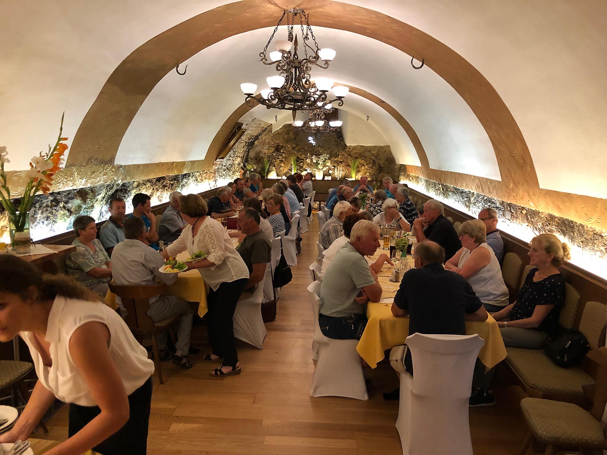 Nach einem ausgezeichneten Mittagessen im Gasthof "Poppmeier" direkt beim Benediktiner-Stift, sind wir nach Maria Rojach zur Fam. Kienzl gefahren. Dieser Walnuss-Verarbeitungsbetrieb hat uns sehr beeindruckt, mit welchem Engagement und Einsatz die Walnüsse maschinell geknackt und gepresst werden. Nach einer romantischen Fahrt durch einen engen Wald- und Schotterweg (unser Busfahrer war da richtig gefordert) zu unserem nächsten Halt beim Buschenschank " Lippitz". Dort stand eine Führung mit Fr. Lippitz durch die Streuobstwiese mit sortentypischen Obstbäumen auf dem Programm. Weiters konnten wir auch die Weinberg- und Spindelanlage besichtigen. Nach einer reichlichen, ausgezeichneten Brettl-Jause mit Verkostung von versch. Weinen sind wir zum Abendessen in die Unterkunft zurück gefahren.