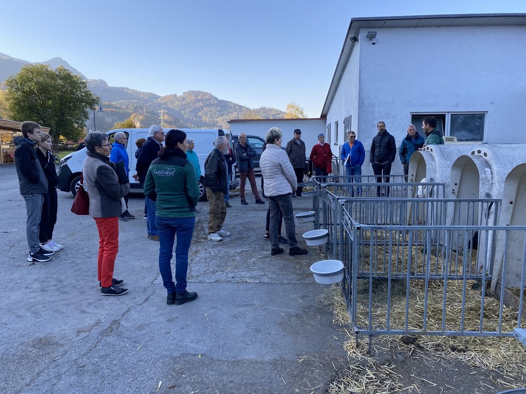 Am 23.10.2021 um 16.00 trafen sich bei strahlendem Herbstwetter die Teilnehmer zur Führung durch den Guschahof (www.guschahof.com) in Bürs, Aulandweg 2 ein. Florian Tschugmell erklärte uns zu erst die Entstehungsgeschichte des landwirtschaftlichen Anwesens und führte uns dann durch den Hof, der derzeit 50 Kühe und 60 Rinder beherbergt. Dazu gab es Erklärungen über den täglichen Ablauf mit den unterschiedlichsten Tätigkeiten und Aufgaben. Zum Großvieh kommen immerhin noch rund 100 Hühner, die alle auch gefüttert, gepflegt und betreut werden müssen. Eine große Überraschung war der Melkroboter, der computergesteuert genau weiß, welche Kuh zum Melkvorgang darf und hohe Hygieneerfordernisse erfüllt.