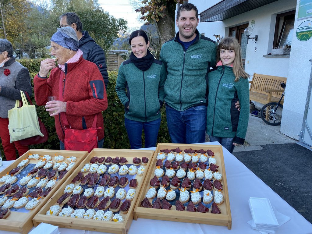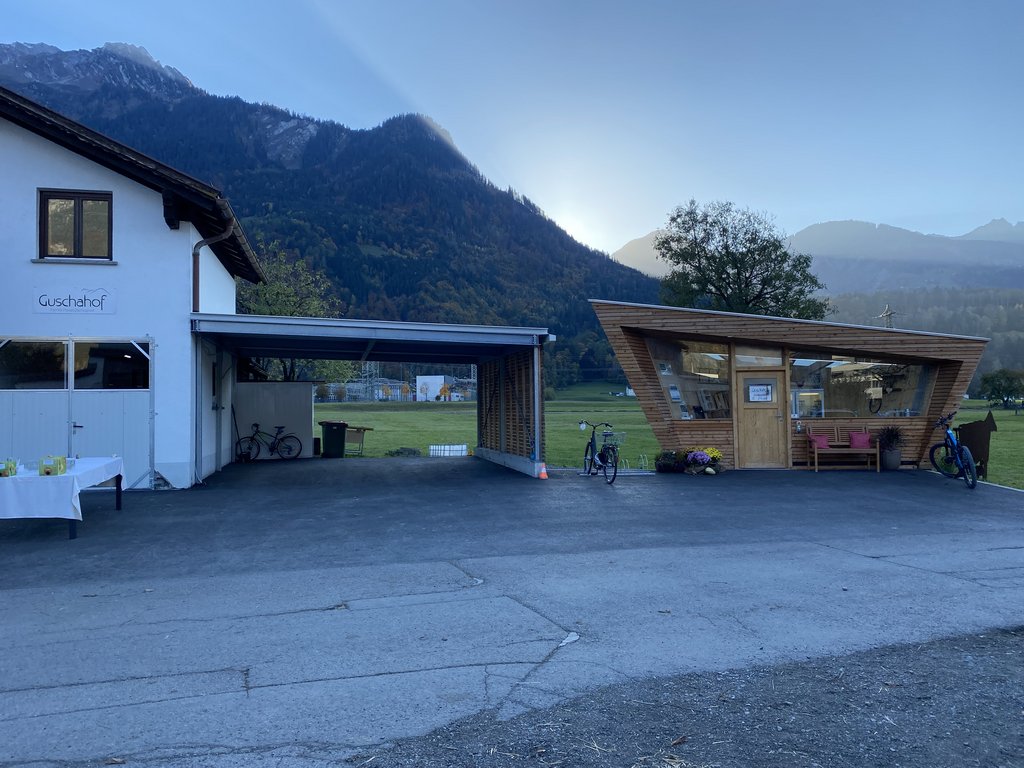 Im Anschluss gab es noch die Besichtigung des Verkaufsstandes, der im Vorfeld schon für Aufsehen sorgte, da es sich um eine ehemalige Bushaltestelle in Bürs handelte. Der krönende Abschluss waren von Yvonne Tschugmell liebevoll bereitgestellte Brötchen mit einem Käse- Kräuteraufstrich sowie Mostbröckchen, natürlich alles vom eigenen Betrieb und Getränken.