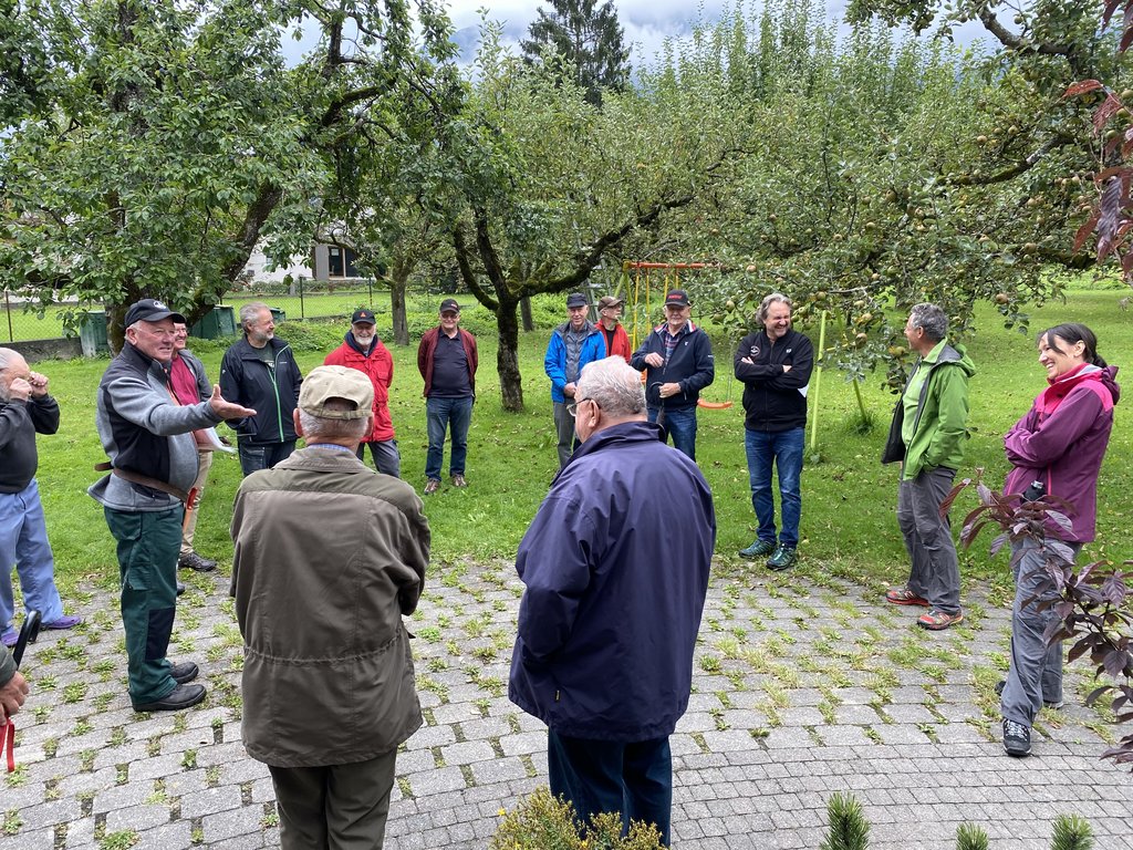 Am 28.08.2021, ab 09.00 Uhr konnten wir, bei leider sehr durchwachsenem Wetter, unter der erprobten Leitung von Walter Mungenast den Sommerschnittkurs durchführen. Walter führte uns fachlich fundiert, mit launigen Worten durch den Vormittag und fesselte die Teilnehmer offensichtlich, so dass sogar der Regen vergessen wurde. Dazu kommt natürlich, dass der von Dr Reinhard Säly zur Verfügung gestellt Bongert, inclusive Bewirtung, die unterschiedlichsten Schnittvorführungen zulässt. Es gibt von Zwetschken-, Birnen-, Apfel- und Marillenbäumen, Weinreben sowie praktisch sämtliche Beerenarten ein umfangreiches Programm abzuwickeln. Somit ging der Vormittag wie im Fluge vorbei. Im Anschluss war noch ein gemütlicher Ausklang auf der Terrasse von Reinhard, mit weiteren Fragen und angeregten Diskussionen. Dabei konnte noch die von Walter zusammen gestellte, schriftliche Zusammenfassung des erlernten ausgeteilt wurde. Herzlichen Dank an Walter, Reinhard und natürlich auch an die 17 Kursteilnehmer.