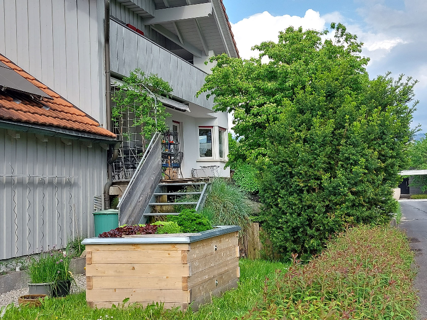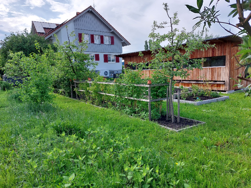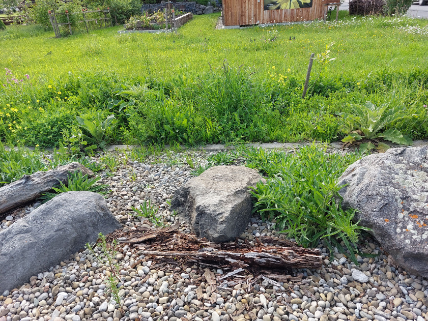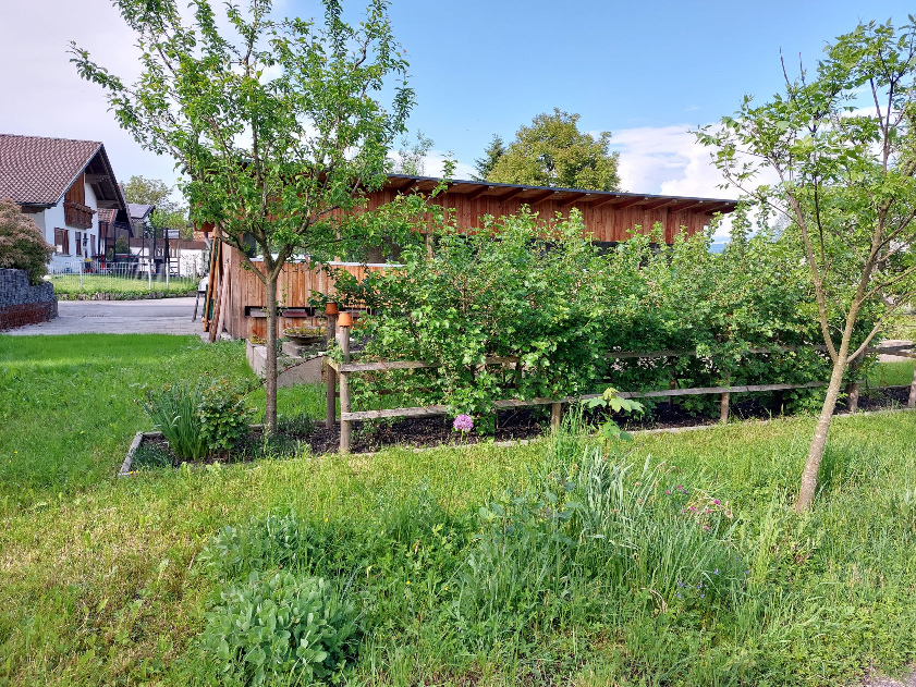 Bei diesem Garten stehen die blühenden Pflanzen im Vordergrund – kein Wunder – hier ist ein Imker am Werk. Der Garten ist so angelegt das immer was für die Insekten blüht und wenn die fleißig ihre Arbeit machen gibt es auch reichlich für den Gärtner zu ernten. Beim Anlegen des Gartens wurde auch auf die Flughöhe der Bienen nach dem Bienenhaus bedacht!