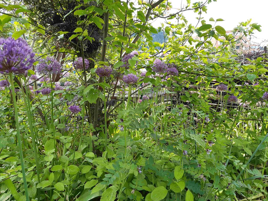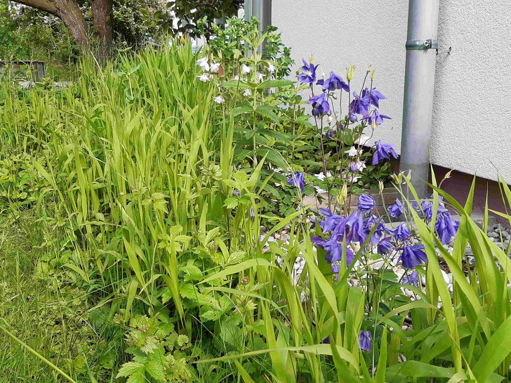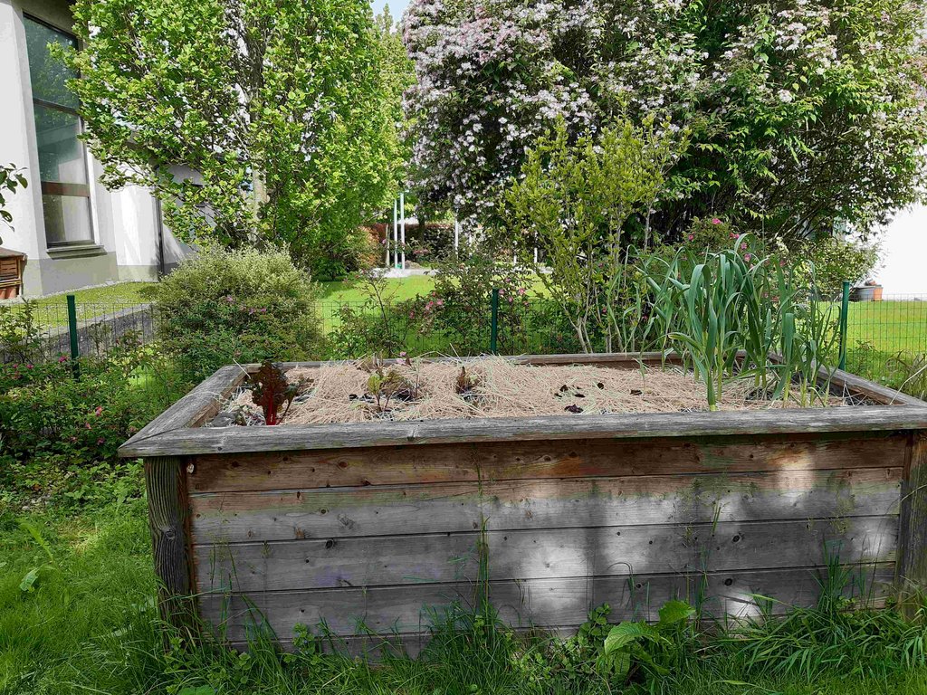 Dieser Garten wurde erst vor einem Jahr von den Vorbesitzern übernommen und schrittweise zum Naturgarten umgestaltet. Heimische Wildsträucher und wilde Zonen bieten Nahrung für Insekten und Vögel, aber auch Beerensträucher, Obst und Gemüsebeete finden hier Platz. Zum Zeitpunkt der Besichtigung wurde gerade ein Heukartoffelbeet angelegt. Junge, moderne, zukunftsorientierte Gärtner sind hier am Werk.