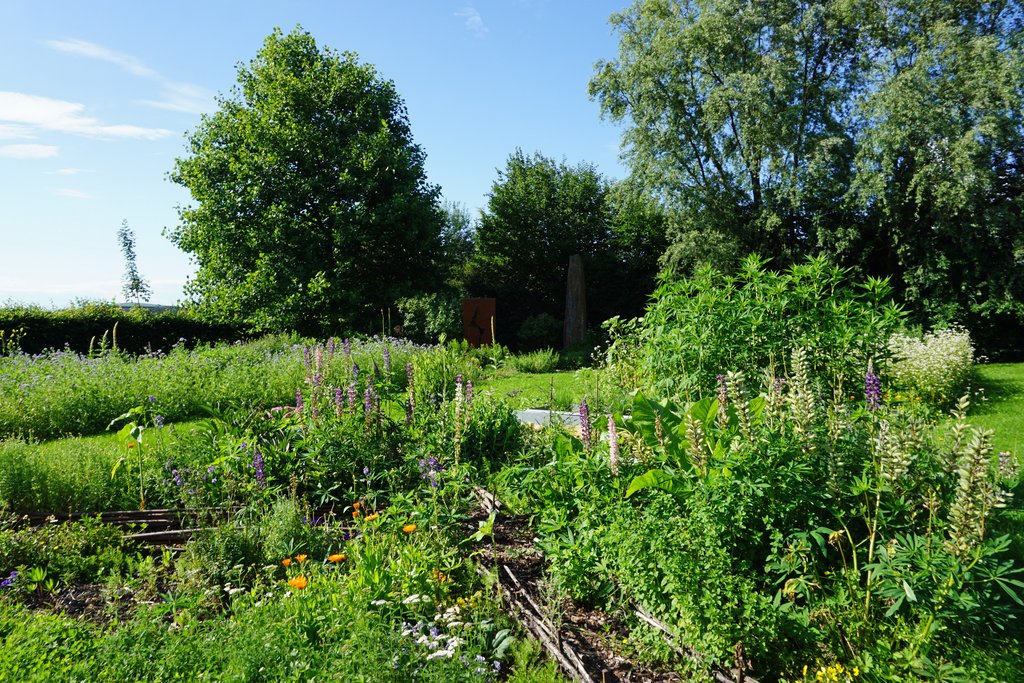 Wunderschöner Naturgarten (sehr groß), außerhalb vom Siedlungsgebiert, mit eigenen Bienen, mit Hochbeeten, Streuobst, ganzjähriger Gründüngung, Hecken, Bach mit Quellwasser und vielen wilden Ecken.