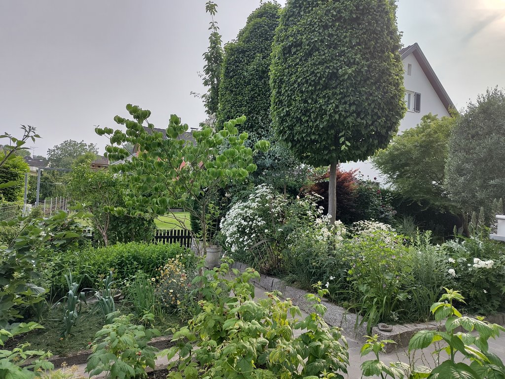 Gut durchdacht und klar strukturiert präsentiert sich der Garten von Sabine Sinz. Er wird mit Formschnitthecken in verschiedene Räume unterteilt. Ausgewählte Gehölze wie zum Beispiel Carpinus betulus "Monumentalis" (Säulen-Hainbuche) auf Hochstamm, sehr langsam wachsend, geben ihm ein besonderes Bild. Vielfälltig und sehr gepflegt präsentiert sich der Garten mit vielen Blühpflanzen, einem Gemüsegarten und Unterschlupfmöglichkeiten für Nützlinge. Auch Steinmauern, ein Kompostplatz und eine wilde Ecke fehlen nicht. Es ist immer wieder überraschend, was sich Besonderes hinter einer Gartenmauer verbergen kann.