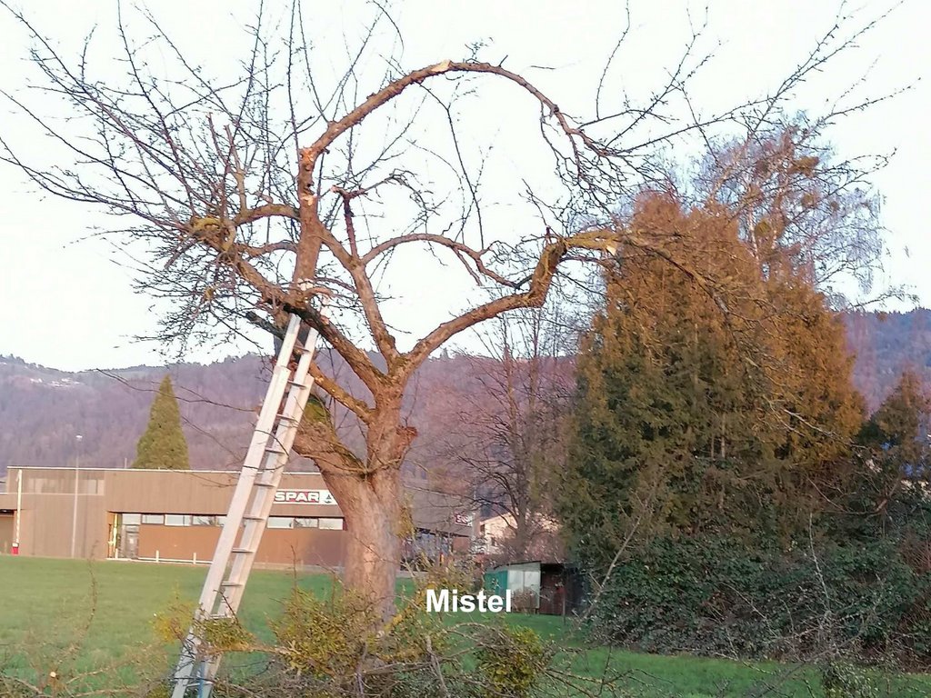 Es ist Zeit um Obst- und andere Bäume von den parasitierenden Misteln zu befreien. Die Bäume durch werden durch die schmarotzenden Misteln geschwächt. Schneelast auf von Misteln befallenen Bäumen verursacht oft großen Schaden.