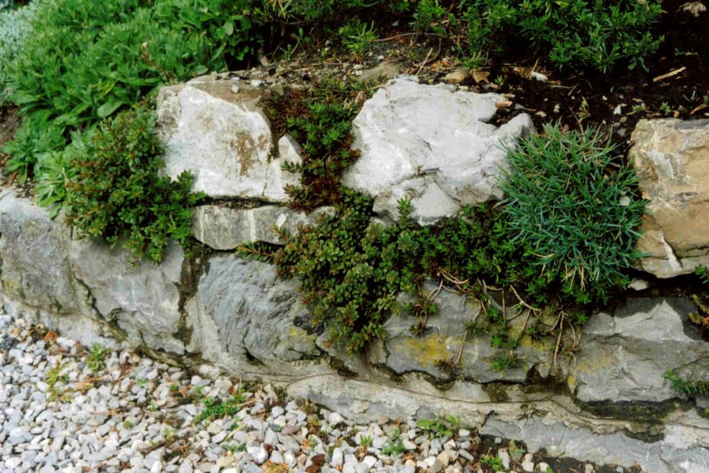 Trockenmauern sehen hübsch aus, wenn sie bepflanzt sind. Am einfachsten geschieht die Bepflanzung gleich während des Aufschichtens der Mauer. Hohlräume werden mit Pflanzsubstrat, bestehend aus Gartenerde und etwas Kompost, verfüllt.