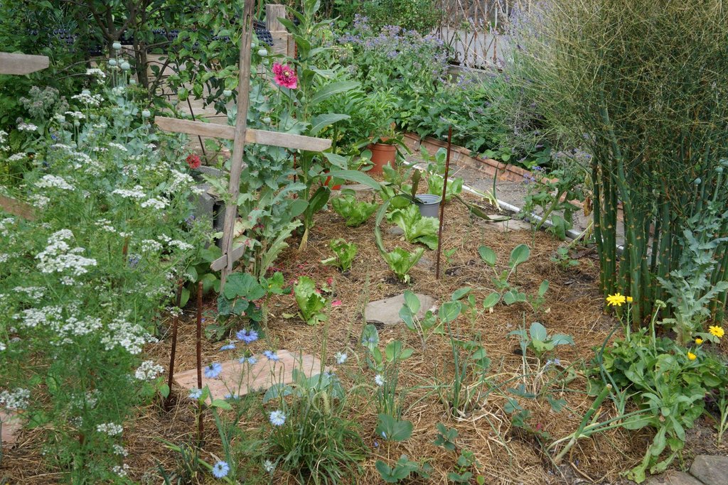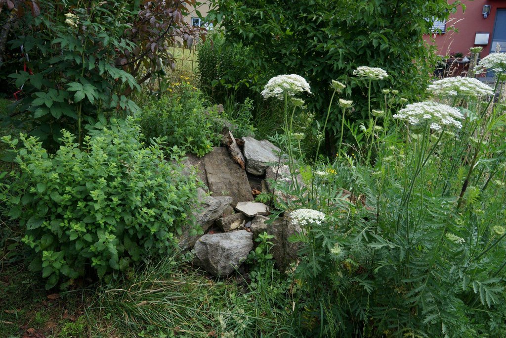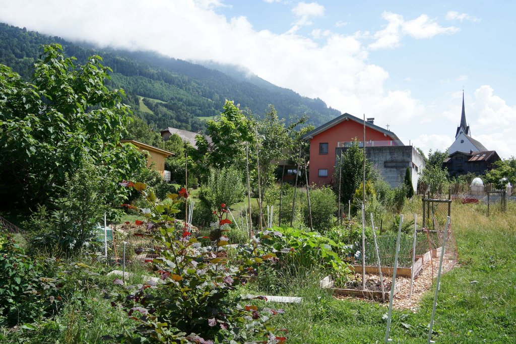 Der Garten von Familie Vonbrül in Schnifis ist sehr vielseitig. Um das traditionelle Bauernhaus finden sich allerlei Gemüsebeete, teils im Boden gewachsen, teils in Hochbeeten. Die Anbauflächen sind mit Grasschnitt gemulcht und werden mit Kompost gedüngt. Alte und neue Obst- und Wildgehölze liefern Nahrung und Schatten. Enten, Lamas und Alpakas sorgen für organischen Dünger und beweiden die Wiesen. Rakyra verarbeitet verschiedene Kräuter. Ihr ist auch ein vielfältiges Blühangebot für Insekten wichtig. Viele Bereiche und Versteckmöglichkeiten bieten Insekten, Vögeln und Amphibien Unterschlupfmöglichkeiten und Nahrung. Eine gemütliche Pergola mitten im Garten bietet einen geschützten Sitzplatz inmitten eines vielfältigen Gartens. Das Dachwasser wird gesammelt und dient der Bewässerung.