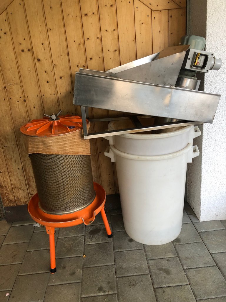 Unsere beliebte Süßmostpresse steht - mit Zubehör -