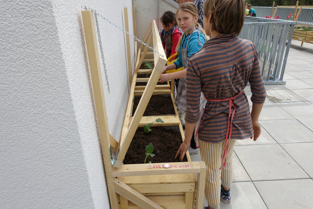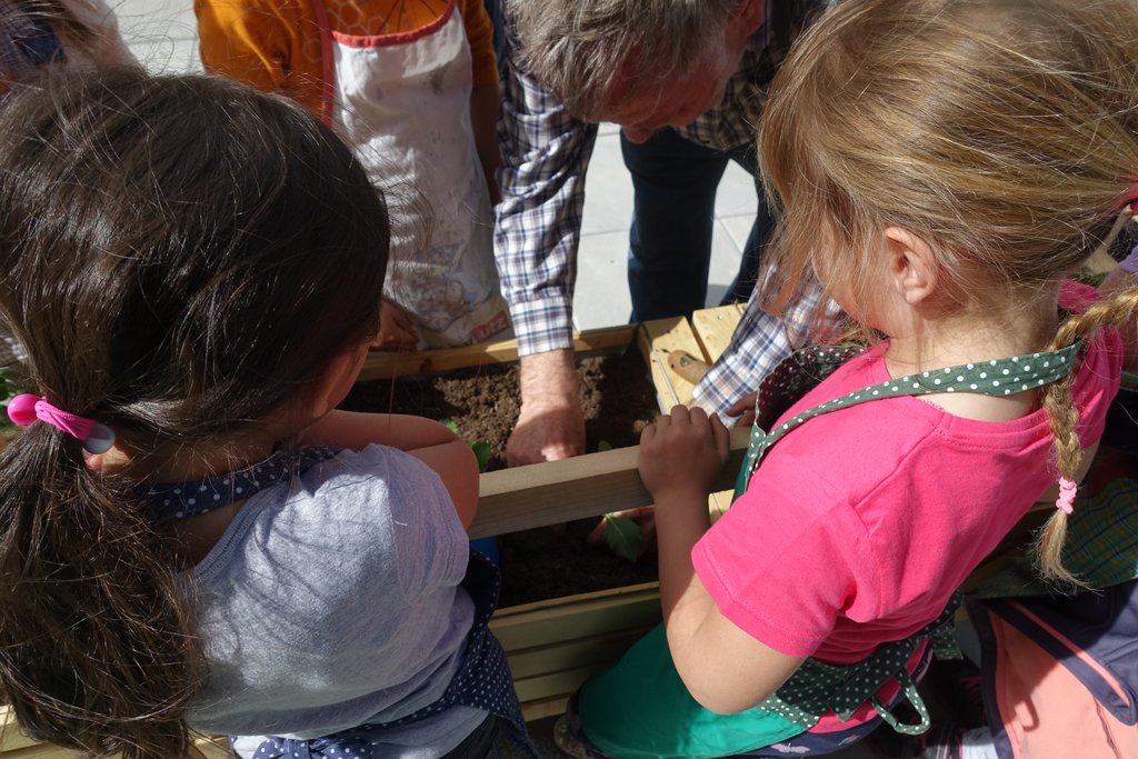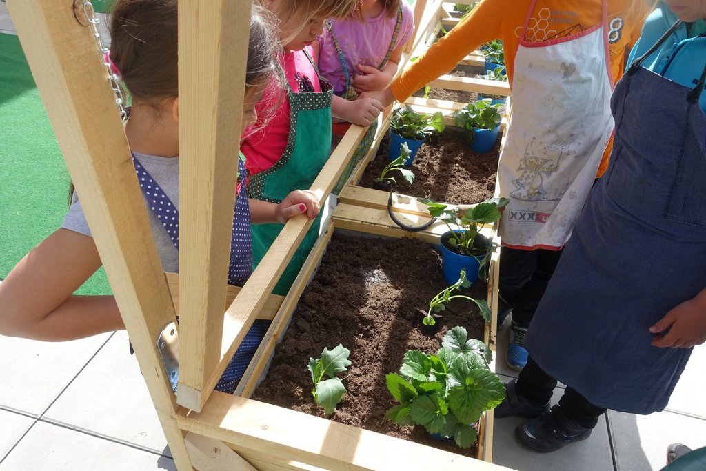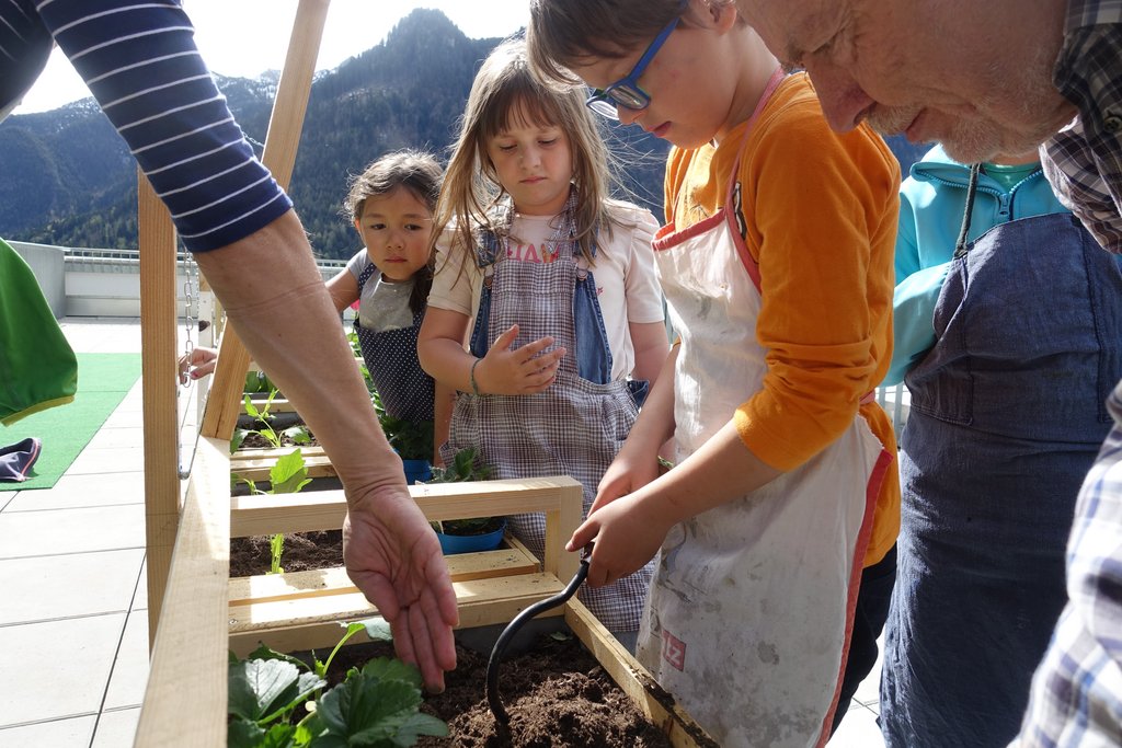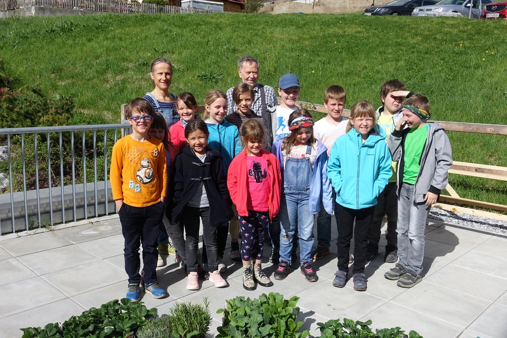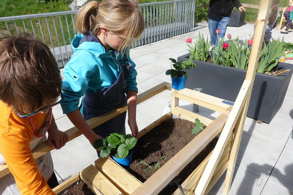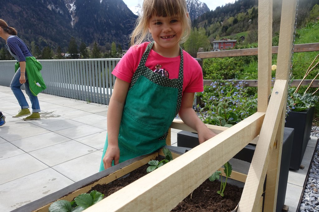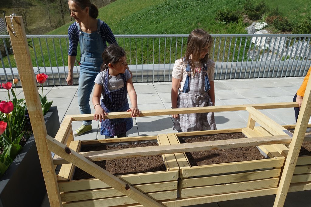 Am 24. April war es soweit, die Holzkisten wurden von den Kindern mit Hilfe von Franz Meyer bepflanzt. Nach einer kurzen Einleitung von Franz, ging es mit großer Freude an die Versetzung der kleinen Pflanzen. Die Setzlinge, wie z.B. Erdbeeren, Kohlrabi, Rübli und einig mehr, bekamen ihren Platz in der Holzkiste. Auch die Gießkanne kam zum Einsatz und manches Kind kam auch noch einen Wasserspritzer ab. Die Kinder hatten großen Spaß dabei. Wir bedanken uns bei der Direktion und Lehrerinnen der Volksschule und der Gemeinde Bürserberg für die Unterstützung der Aktion "MI KISCHTA GÄRTLE". DANKE