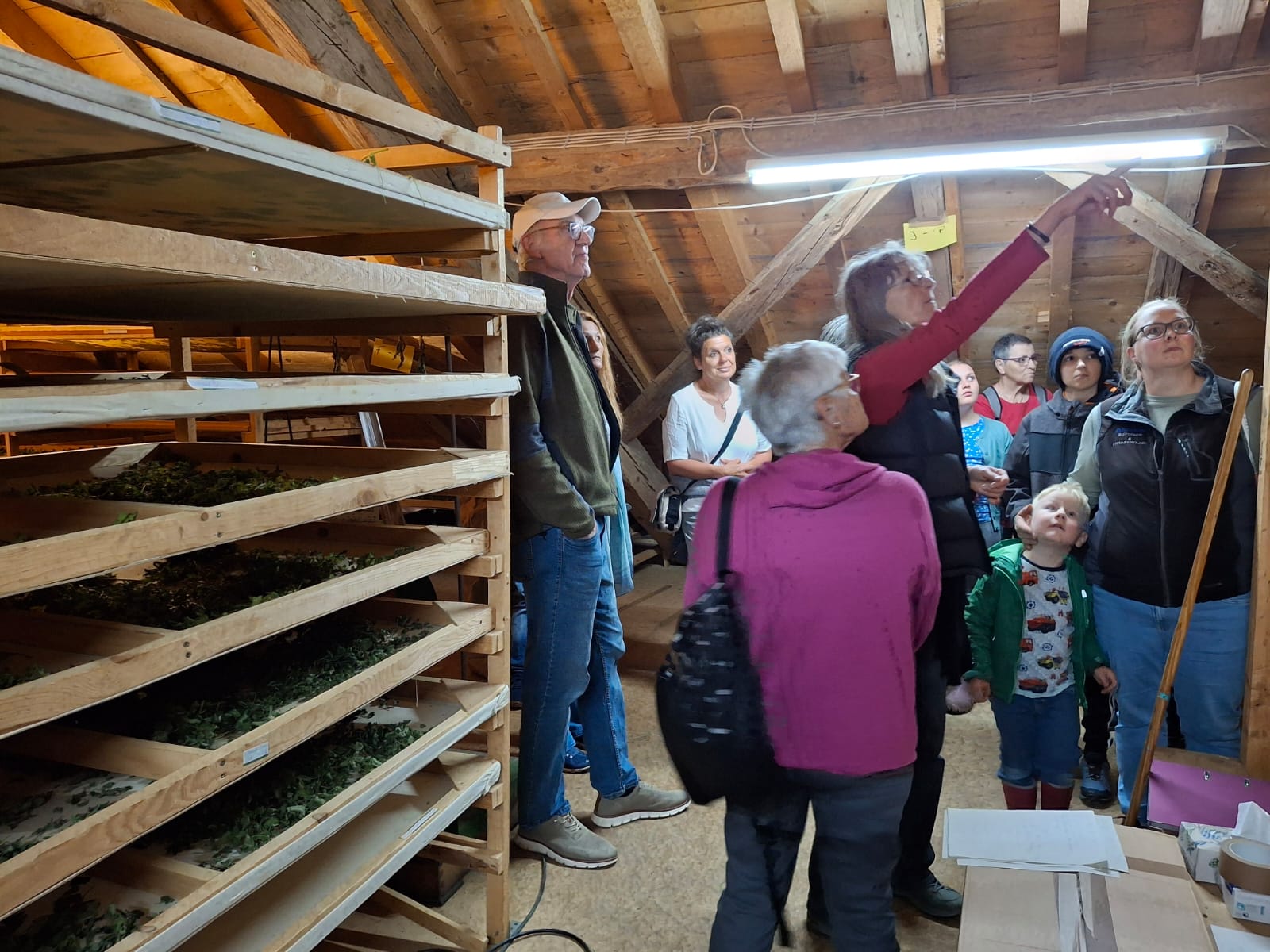 Nach der Ankunft im Allgäu begann der Ausflug mit einer informativen Führung durch den Kräutergarten. Hier erhielten die Teilnehmer spannende Einblicke in den Anbau und die Nutzung verschiedener Kräuter. Besonders im Fokus standen die vielseitigen Anwendungsmöglichkeiten von Kräutern in der Küche sowie deren heilende Eigenschaften. Anschließend wurde auch der Gemüseanbau thematisiert, wobei die Gruppe mehr über nachhaltige Anbaumethoden und die Vielfalt der heimischen Pflanzenarten lernte. Auch über die Entstehungsgeschichte des Kräutergartens wurde berichtet. Am Ende der Führung wurden noch die Trockenräume für die Kräuter im Dachboden gezeigt. Das Gebäude war früher ein Bauernhof und wurde mit sehr viel Liebe an die jetzigen Bedürfnisse umgebaut und angepasst.