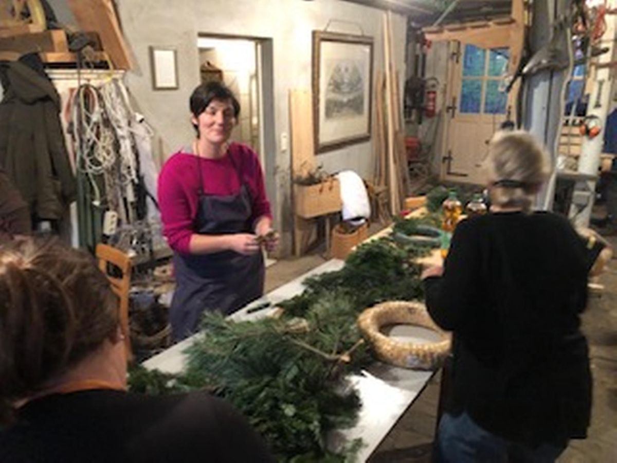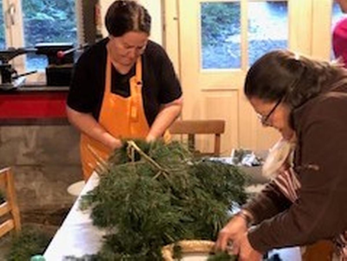 Unter der Patronanz von Nicolai Jochum fanden sich 7 Frauen in der Werkstatt der Gärtnerei ein und fertigten im geselligen beieinander 10 Adventkränze.