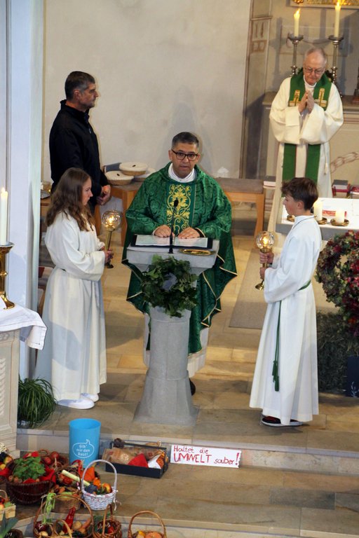So wie im Vorjahr etablierte sich auch kürzlich die weitere Auflage des Erntedankfestes als Treffpunkt für alle Generationen. Sehr angetan zeigte sich Pfarrer Marius Dumea im Beisein von Pfarrer Herbert Böhler beim Familiengottesdienst einerseits über die vielen Kinder bei der Messe und andererseits über die dutzenden Erntedankkörbe samt den dekorativen Elementen an den Seitenaltären.