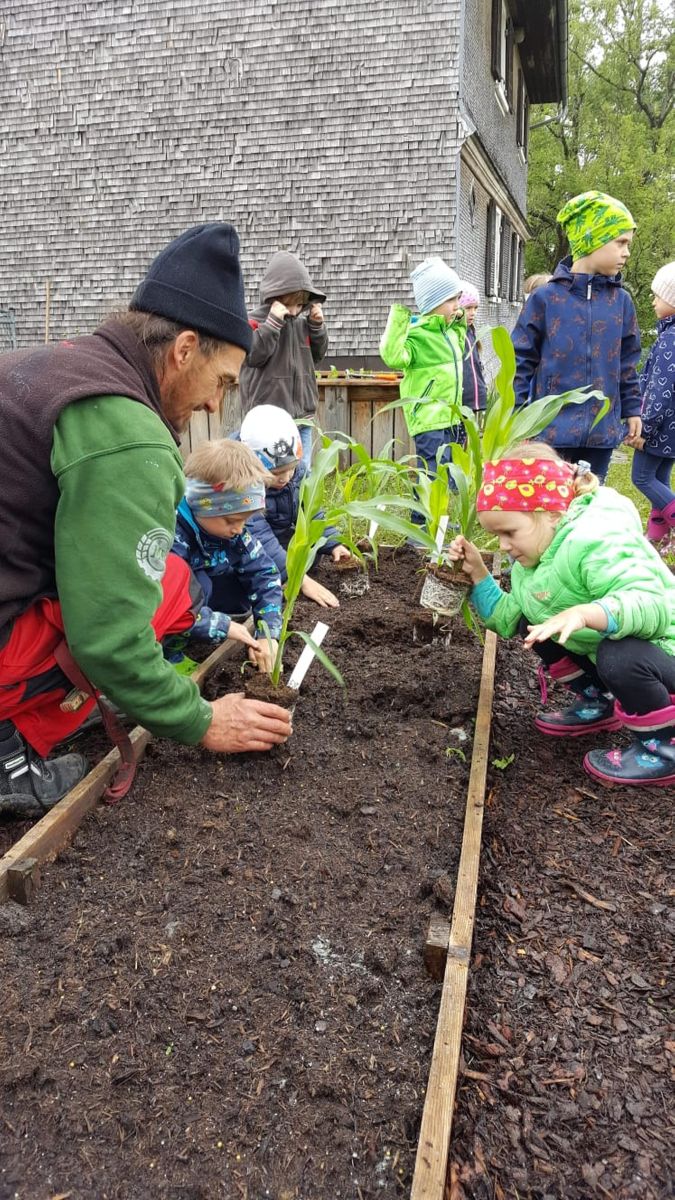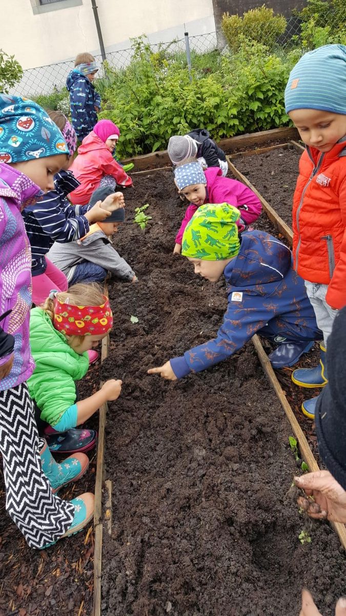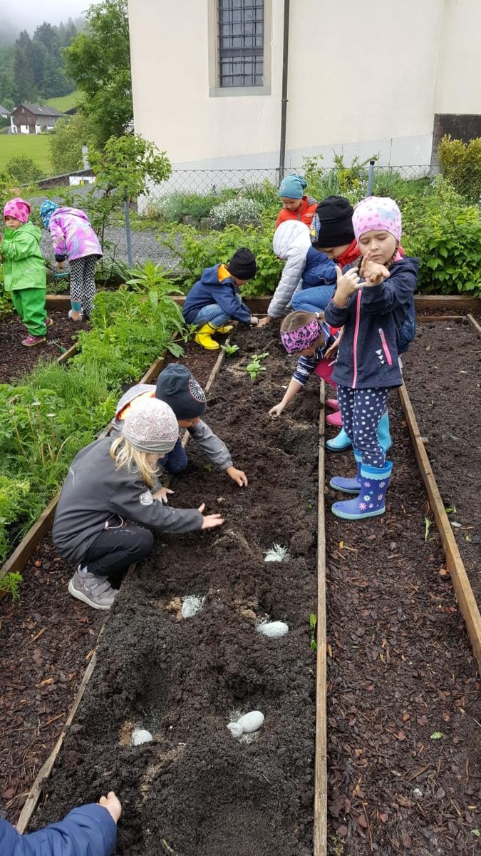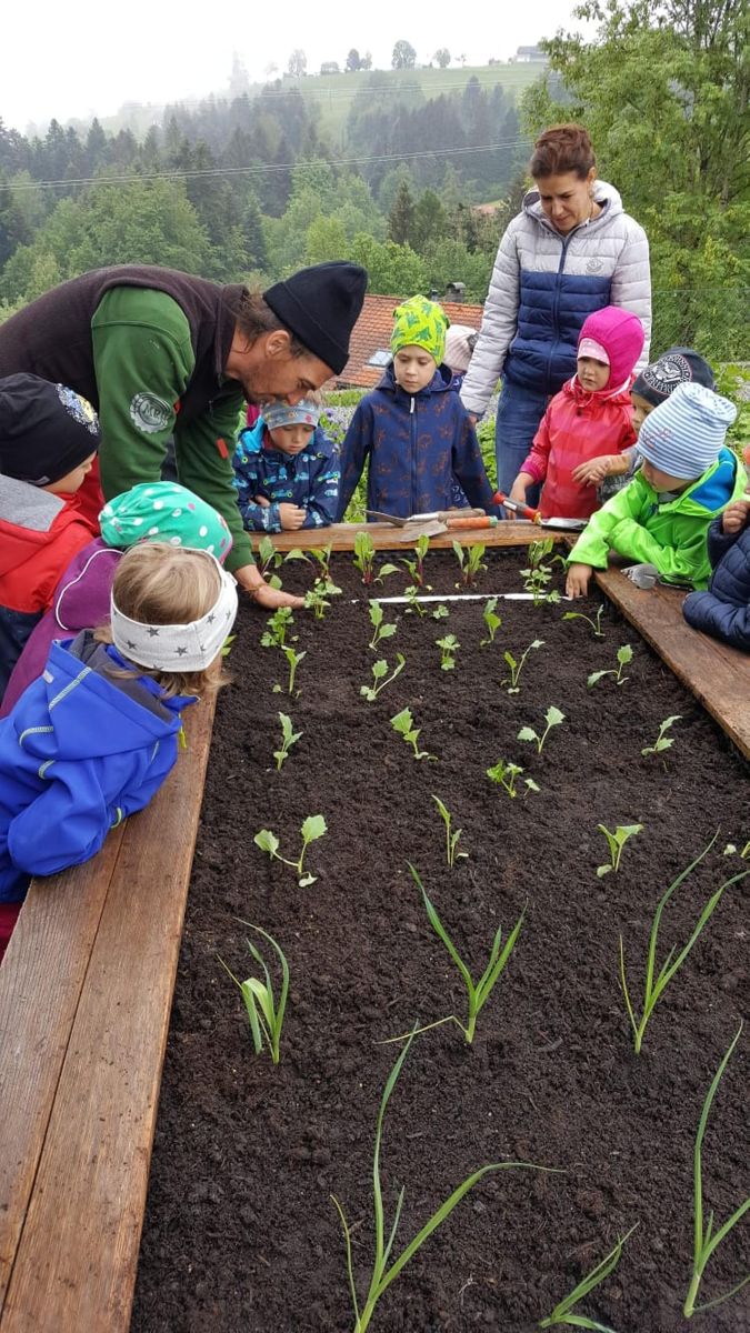 So konnten die Kinder spielerisch lernen, wie man die verschiedenen Setzlinge richtig pflanzt, welche Vorbereitungen dazu notwendig sind und auch welche Kleinlebenwesen sich im natürlichen Garten tummeln.