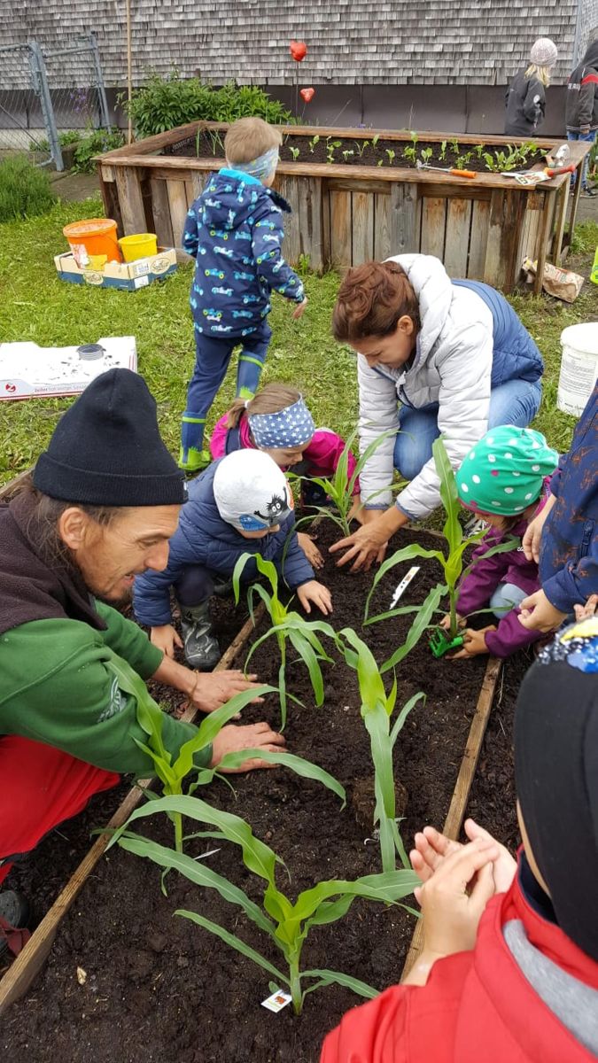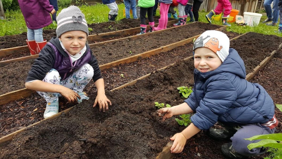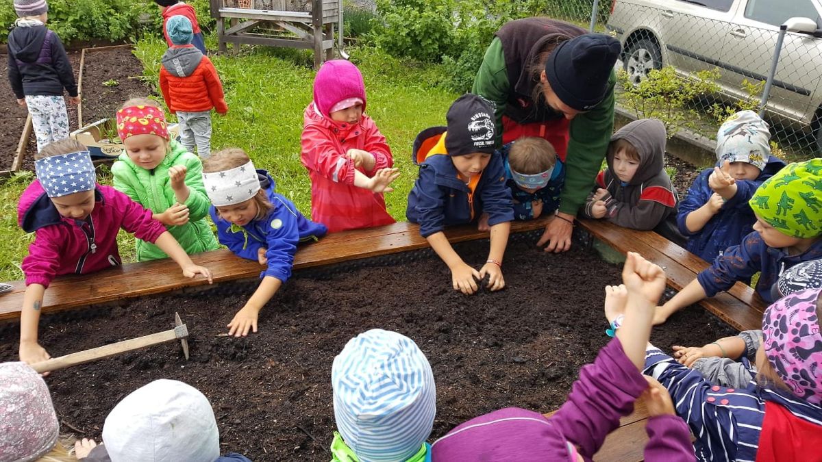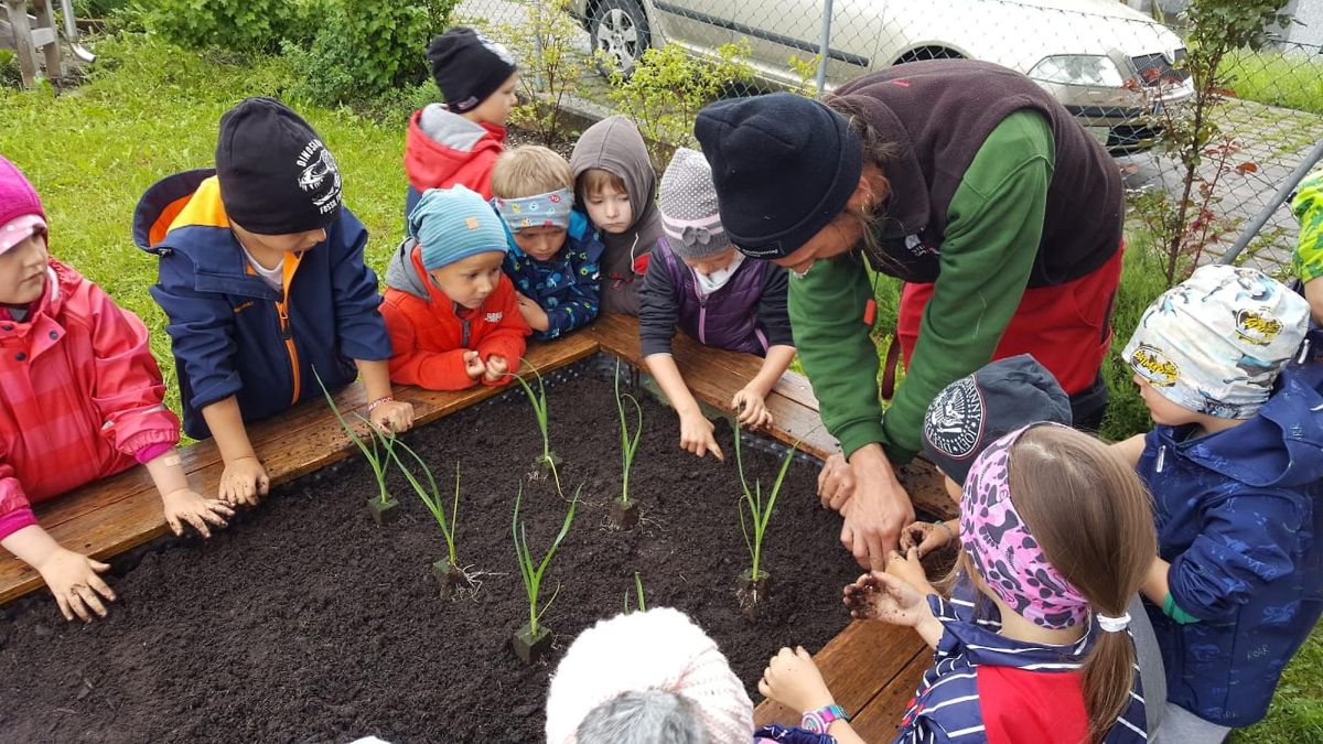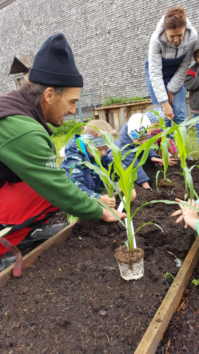 So konnten die Kinder spielerisch lernen, wie man die verschiedenen Setzlinge richtig pflanzt, welche Vorbereitungen dazu notwendig sind und auch welche Kleinlebenwesen sich im natürlichen Garten tummeln.