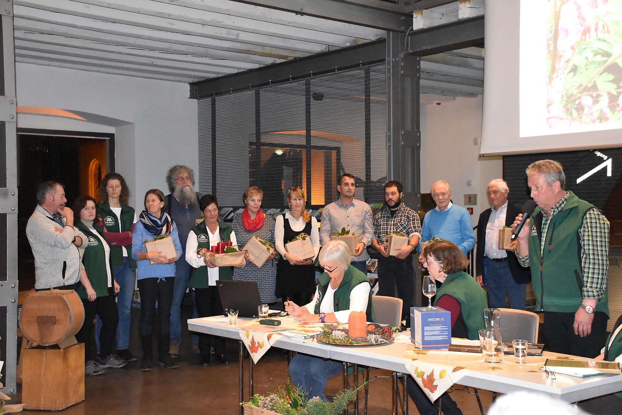 Nach den Formalitäten, wie Kassabericht und -prüfung, der Ehrung der 40-jährigen Mitglieder und dem Gedenken an die Verstorbenen, gab es einen interessanten Rückblick über das 130-jährige Bestehen und die Entwicklung des OGV Dornbirn. Viele der angebotenen Veranstaltungen haben darum so reibungslos funktioniert, weil wir zahlreiche "helfende Hände" zur Verfügung hatten. Diese Personen erhielten als Dank die neuen Gläser des OGV Dornbirn, die wir extra anfertigen ließen.