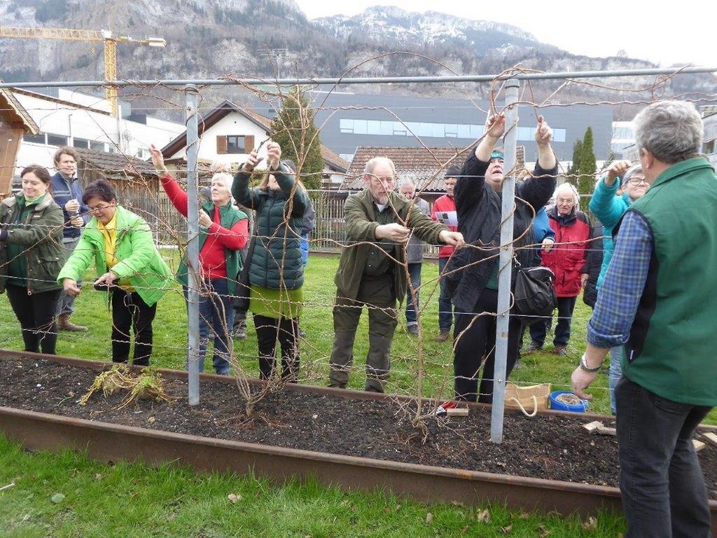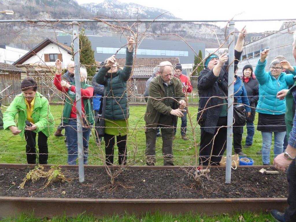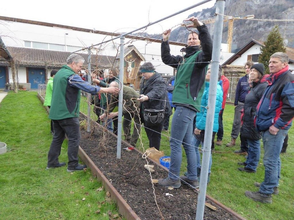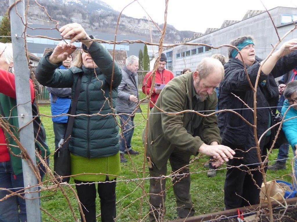 Fast 40 Personen - aufgeteilt in zwei Gruppen - trafen sich am 29.2. bei Wolfgang Fässler in Bobletten 26. . Eine Gruppe war beim Kiwi schneiden, die andere Gruppe beim Traubenschnitt, nach einer Stunde wurde gewechselt.