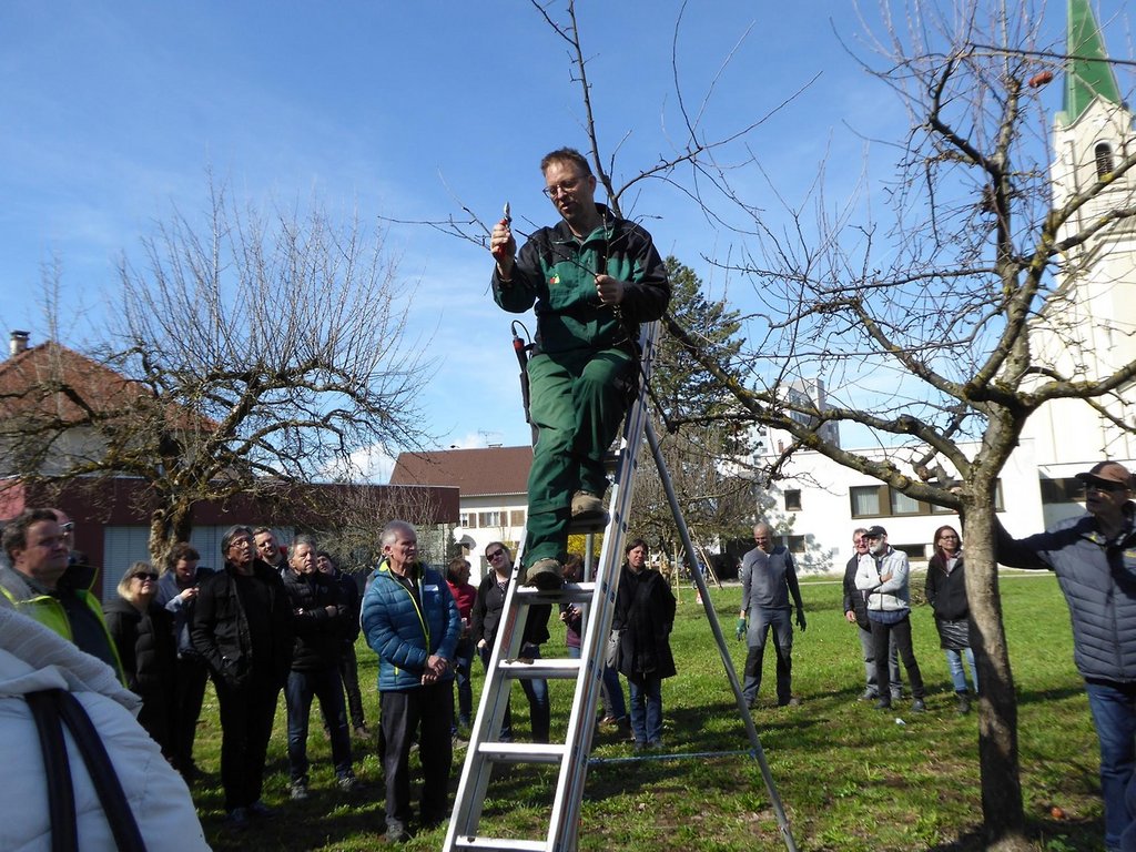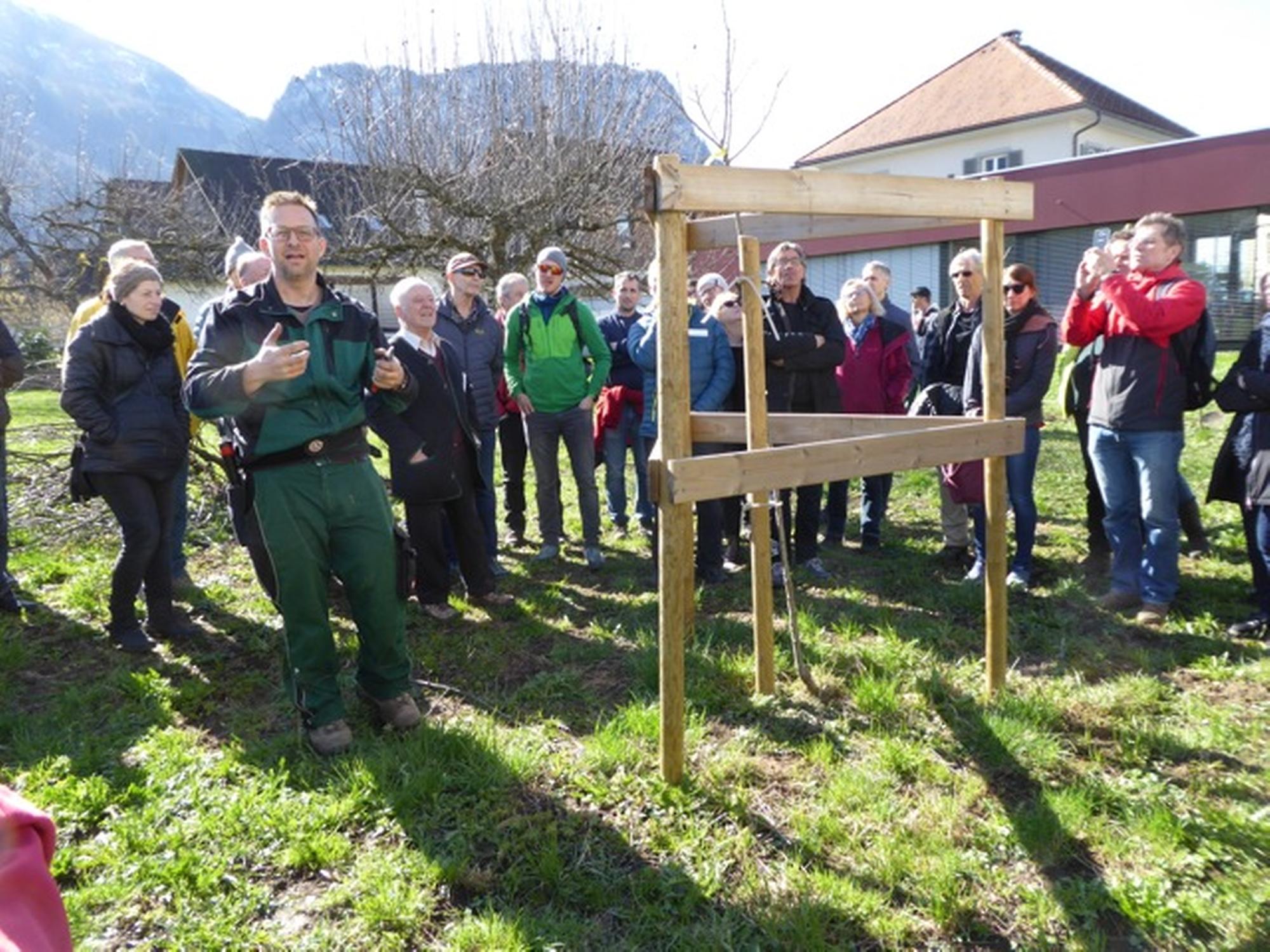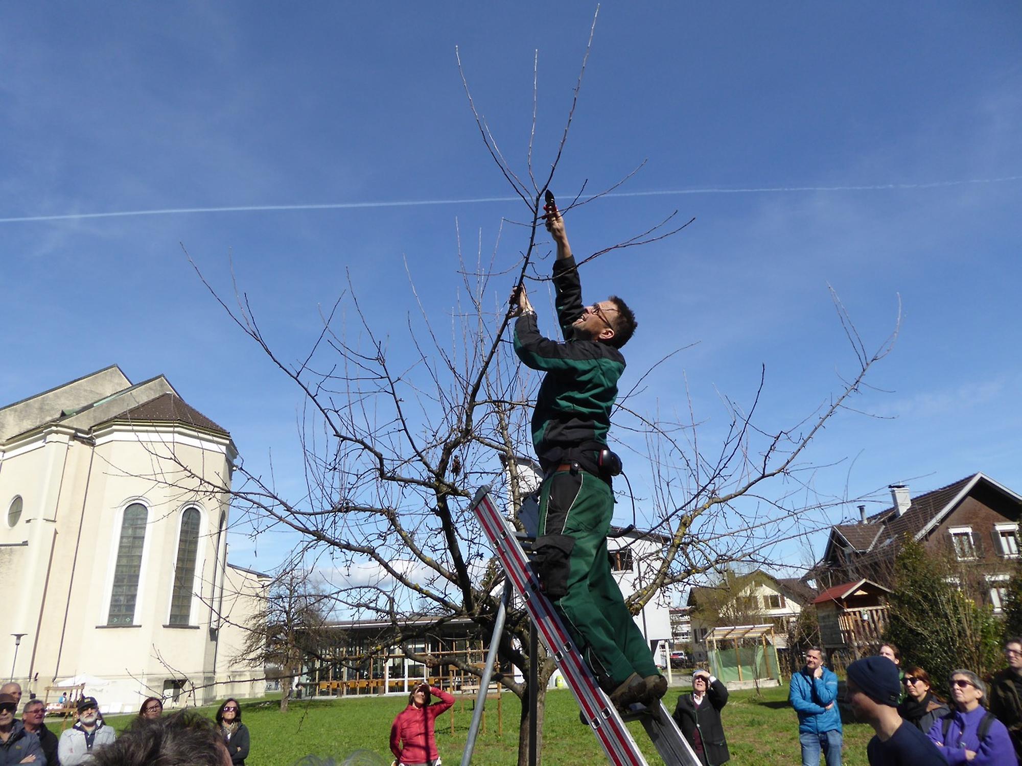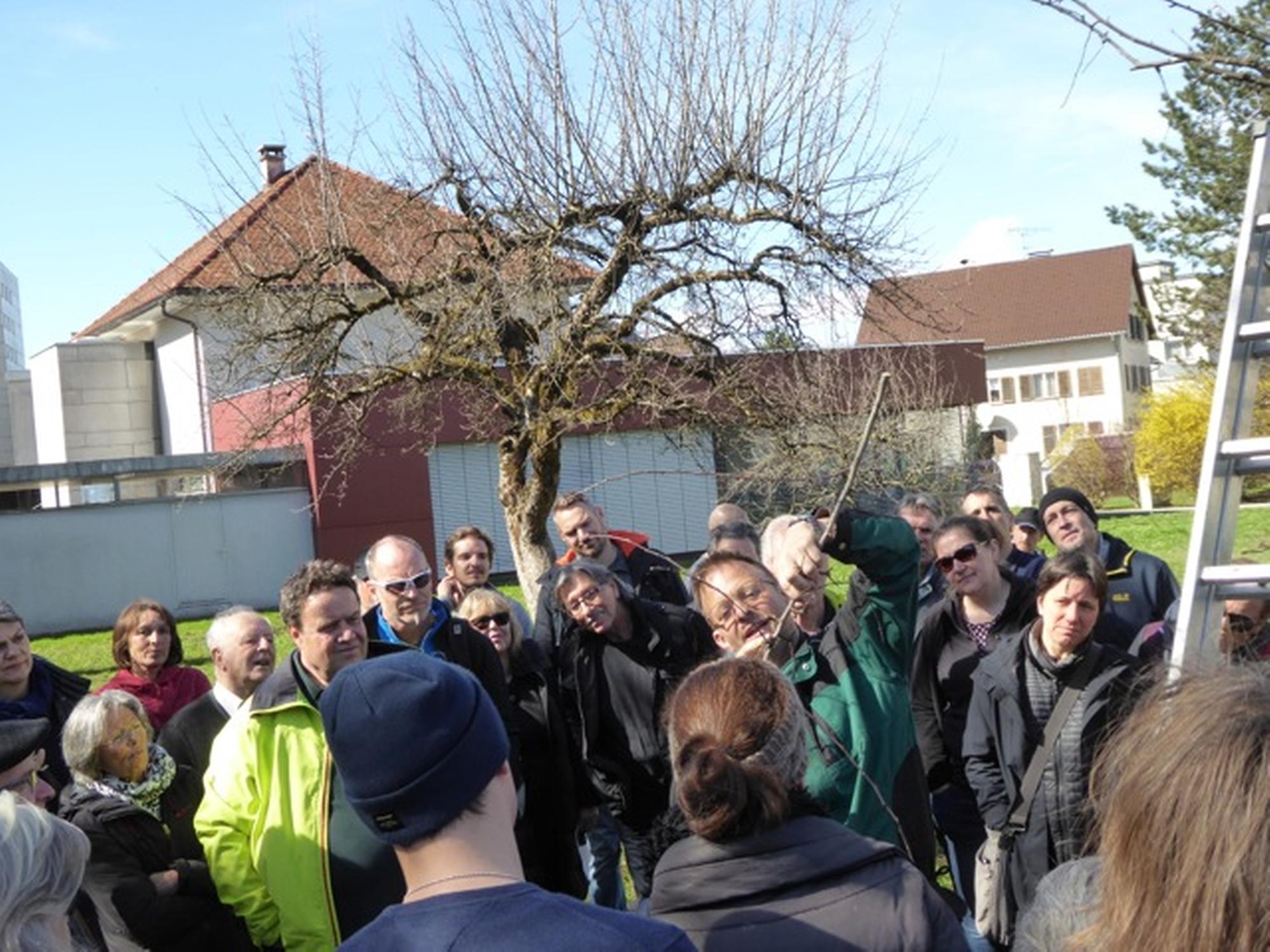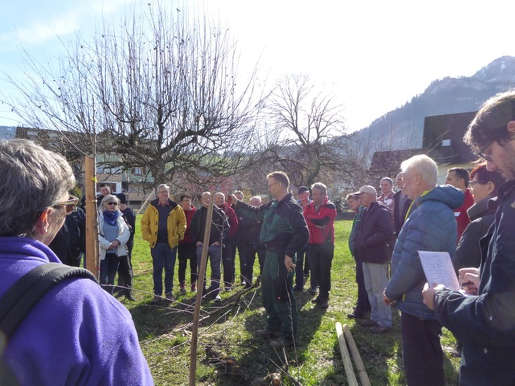 Bei herrlichen Frühlingswetter trafen sich über 60 Interessierte in der Hatler Kirchenbündt um Neues über den richtigen Obstbaumschnitt zu erfahren, bzw. um das bereits erlernte Wissen zu vertiefen.