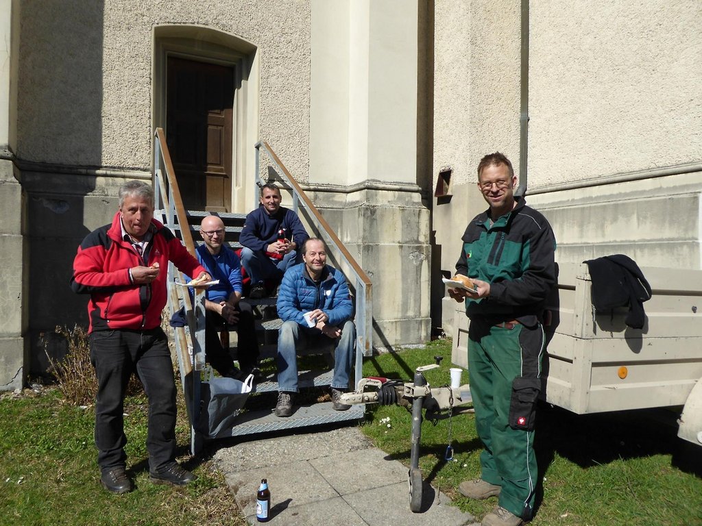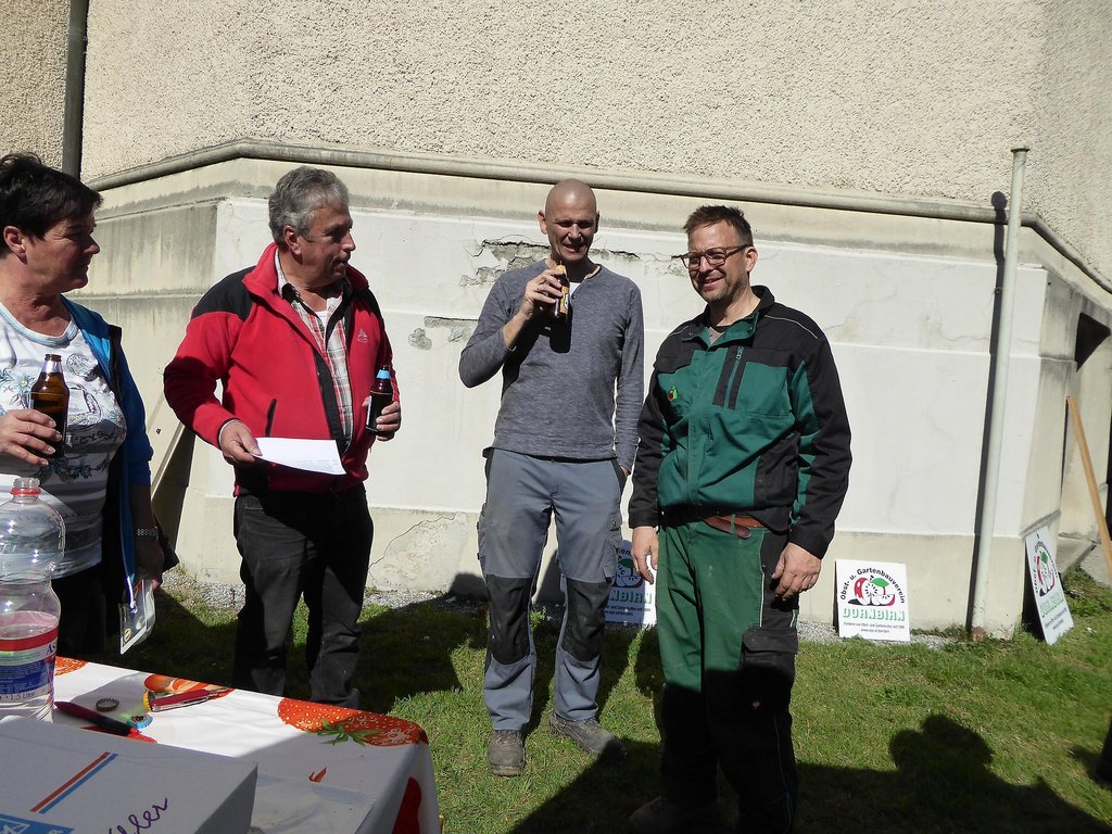 Nach getaner Arbeit gab es einen gemütlichen Ausklang bei einem erfrischenden "kühlen Blonden" mit Wurst und Brot. Dabei wurde noch ausführlich über das Gelernte diskutiert und Erfahrungen um den Garten ausgetauscht.