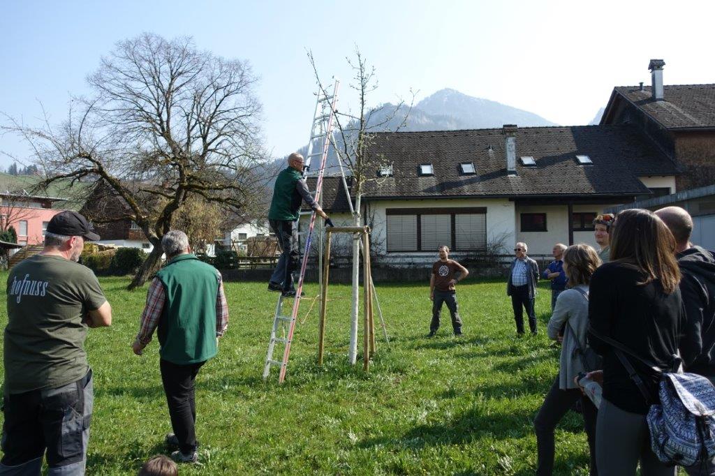Danach hat er erklärt wie wichtig es ist, den richtigen Baum für den eigenen Garten auszuwählen. Die Sortenauswahl, die Größe und vor allem der richtige Standort entscheiden, ob später eine gute Obsternte erwartet werden kann. Egal ob Spindel, Halbstamm, Hochstamm, das richtige Setzen des Baumes ermöglicht erst, dass ein Baum gut gedeihen kann.