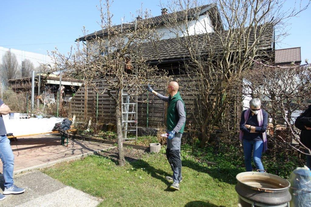 Die wichtigsten Grundlagen für einen Baumschnitt sind das Beachten der Wachstumsgesetze, die verschiedenen Schnitttechniken für einen Erhaltungs- und Erziehungsschnitt und das Erkennen der verschiedenen Knospenarten. Manfred hat dazu allen den Unterschied zwischen Blüten- und Blattknospen gezeigt.