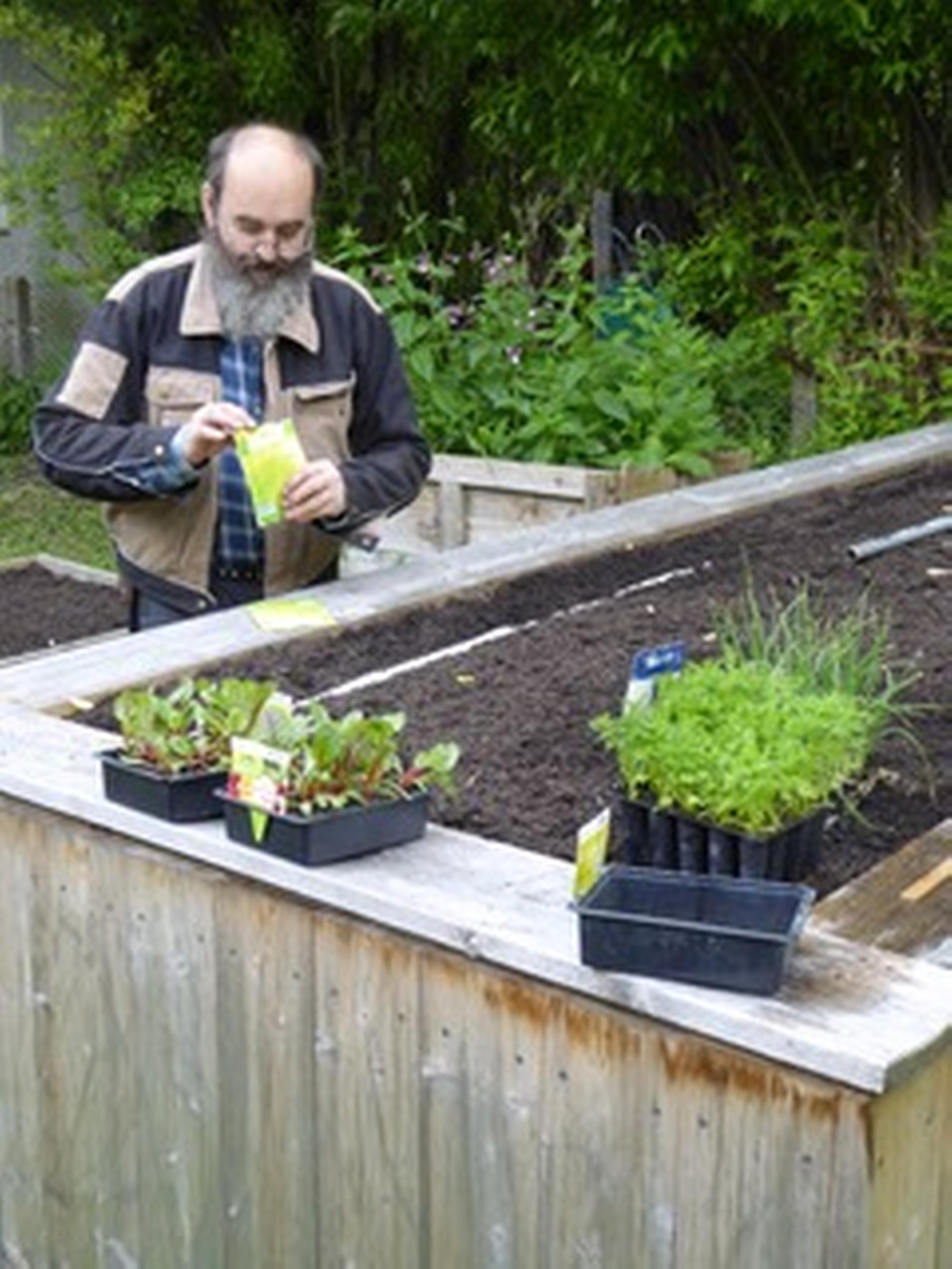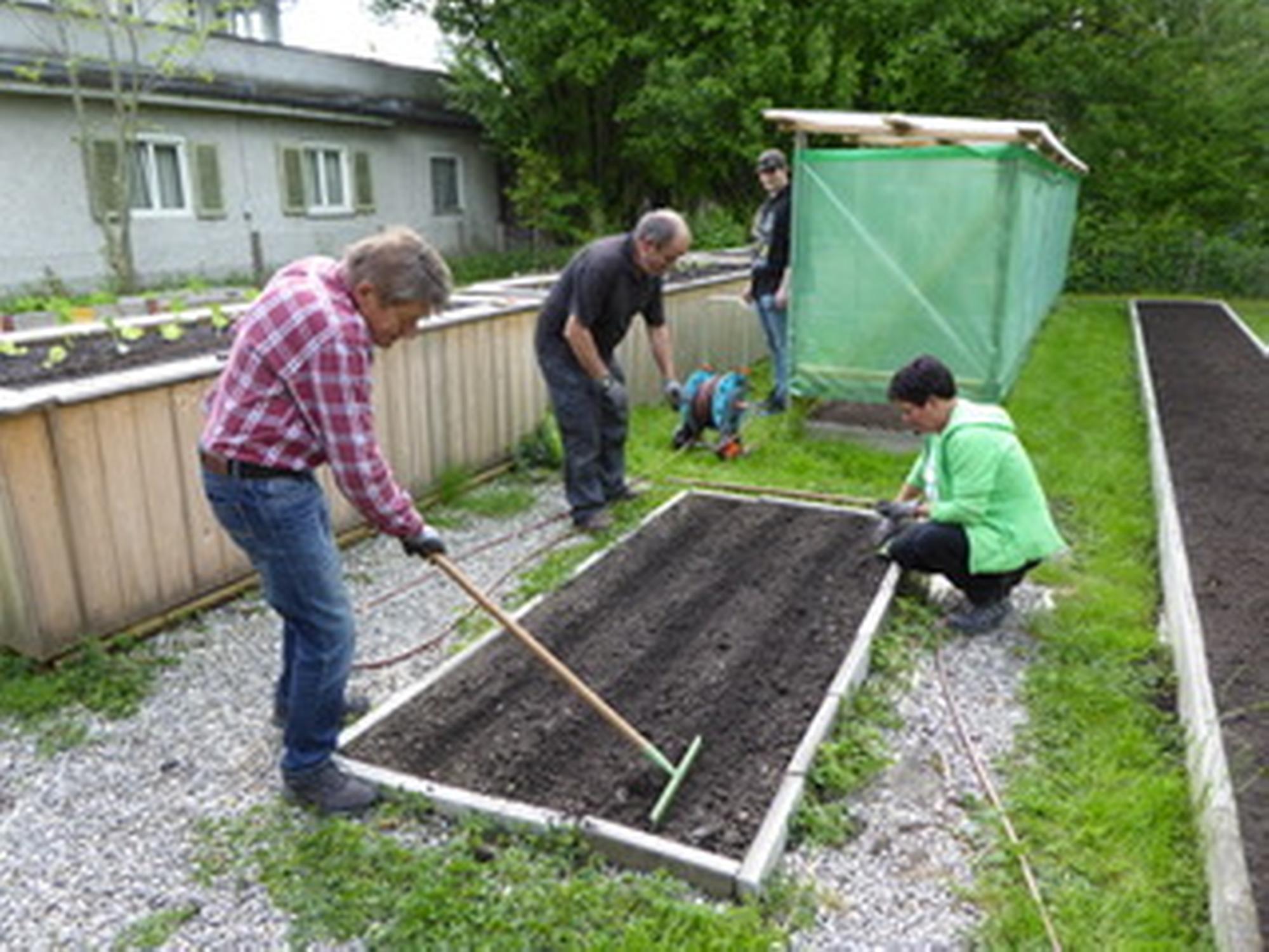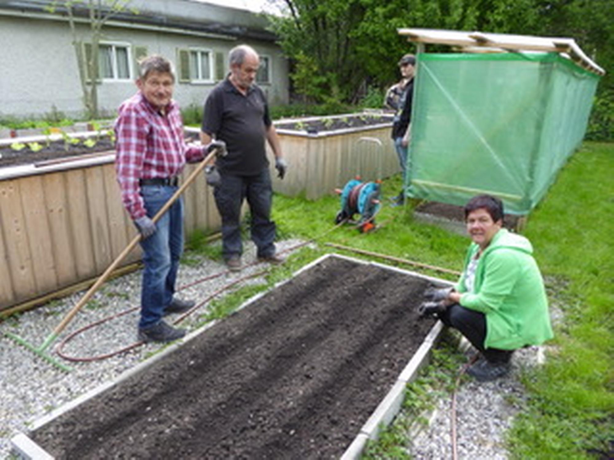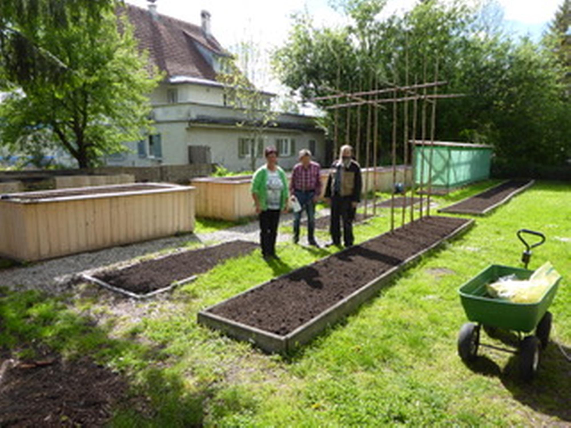 Anfang Mai wurden in Zusammenarbeit mit Wolfgang, Bragi und Niko vom Bonettihaus und mit der Unterstützung von Bernhard, Edith und Sigi vom OGV die Beete mit frischen Gemüsesetzlingen bepflanzt, bzw Radieschen, Karotten, etc gesät und Stangenbohnen und Buschbohnen gesteckt. Bei den Tomaten und Paprika, bzw den empfindlichen Gurken wurde noch zugewartet bis es ein bisschen wärmer wird.