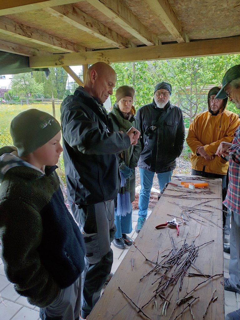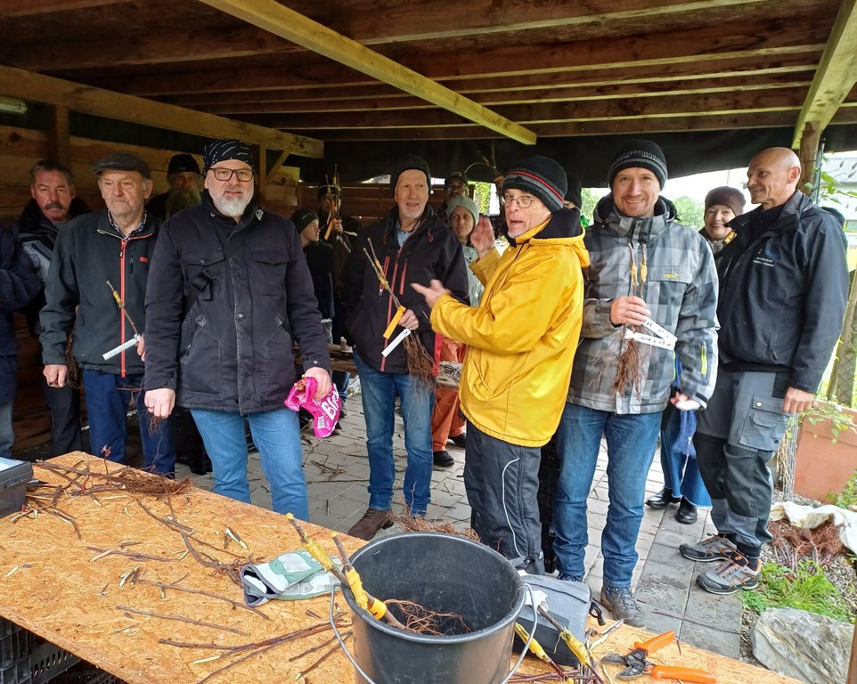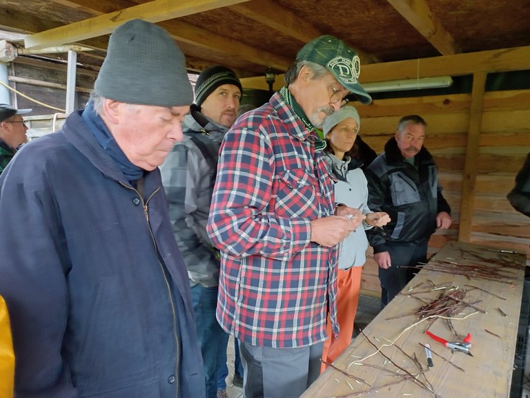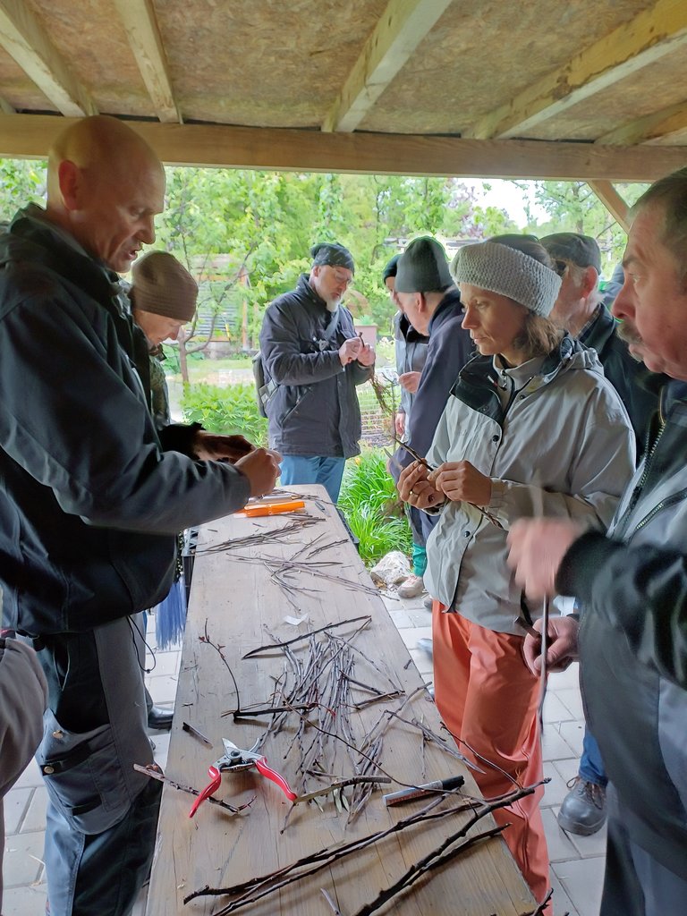 Eine Technik, welche mit ein bisschen handwerklichem Geschick und Erfahrung auch ohne weiteres selbst gemacht werden kann. Manfred Prutsch gab am vergangenen Samstag sein Wissen und seine Erfahrung wie veredelt wird, und worauf dabei geachtet werden muss, an viele Interessierte weiter. Unterstützt wurde er dabei von unserem jungen Gärtnermeister Mathias Winsauer. Es wurden die Schnitte probiert und geübt und jeder Teilnehmer hat für sich 2 junge Spindelbäume gemacht. Mit viel Eifer war auch der jüngste Teilnehmer, Leon, mit gerade einmal 11 Jahren dabei und auch er hat mit Stolz seine eigenen Bäume gemacht.