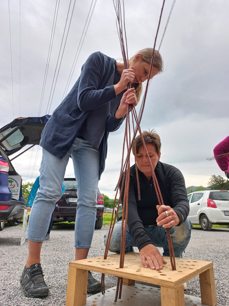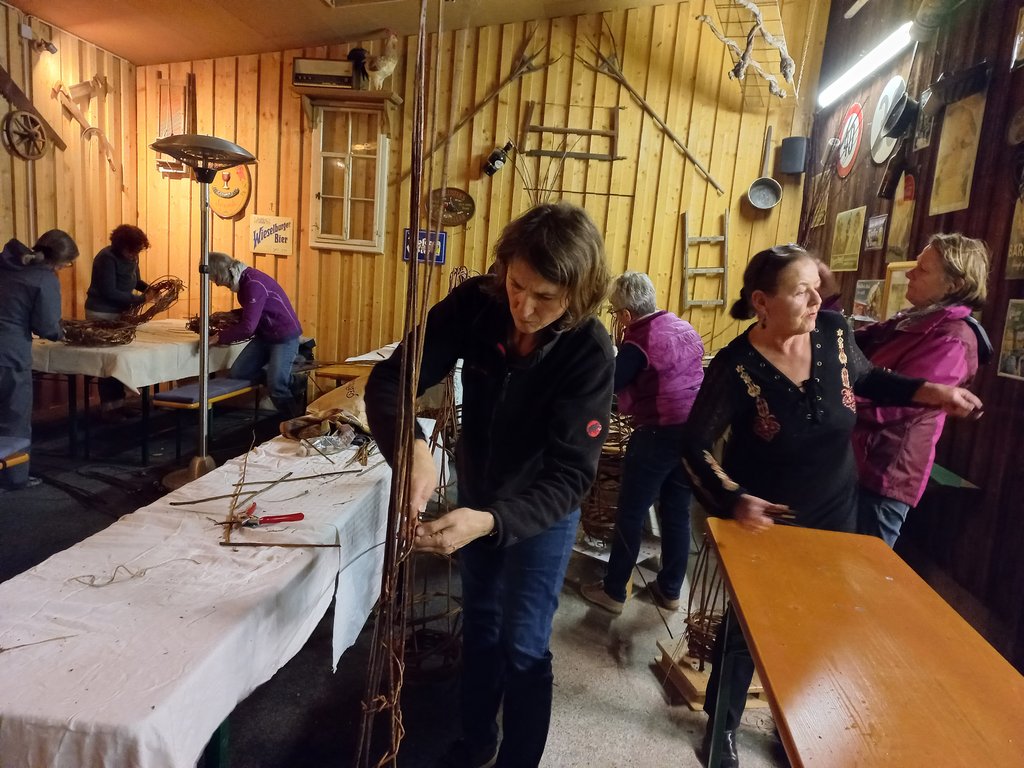 Renate Moosbrugger und Sigrid Schertler zeigten allen im Kurs, wie gut und am Ende relativ einfach sich diese Weidenflechtarbeiten herstellen lassen. Es war für alle am Anfang schwierig und die beiden Kursleiterinnen hatten viel zu tun, um alle Fragen zu beantworten und jedem vorzuzeigen, wie mit Weiden gearbeitet werden muss. Aber mit der Zeit gelang es allen immer besser, die manchmal etwas störrischen Weidenruten richtig zu verarbeiten.