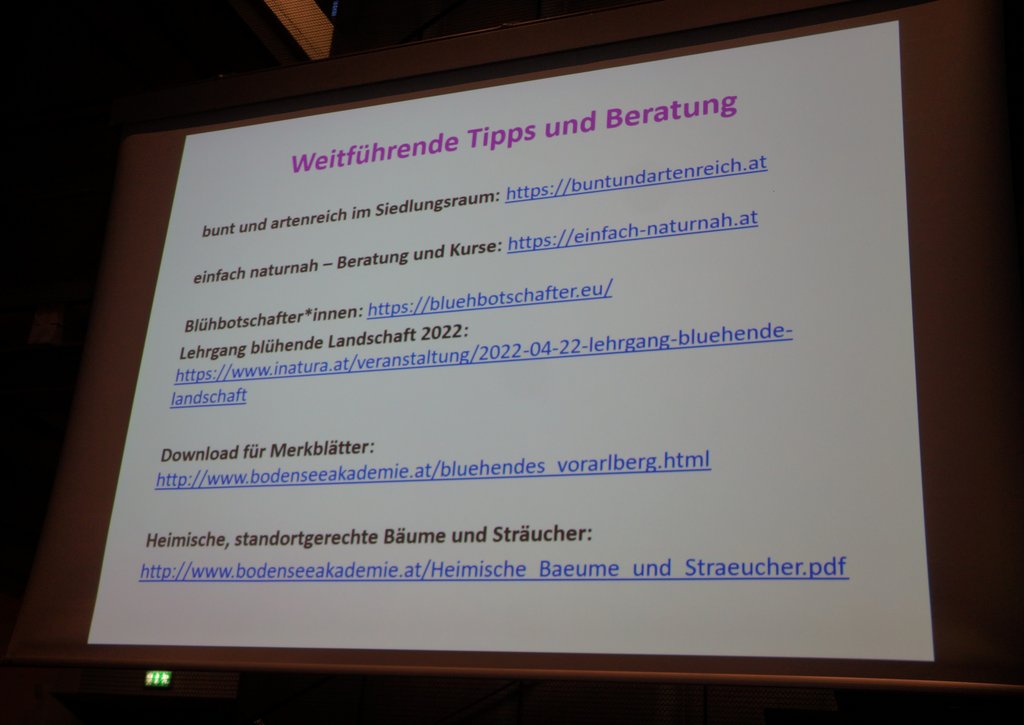 Unterlegt mit vielen Bildern erklärte Simone, worauf es ankommt, damit wir unsere Gärten und unser Umfeld nachhaltig und sehr umweltfreundlich gestalten können.