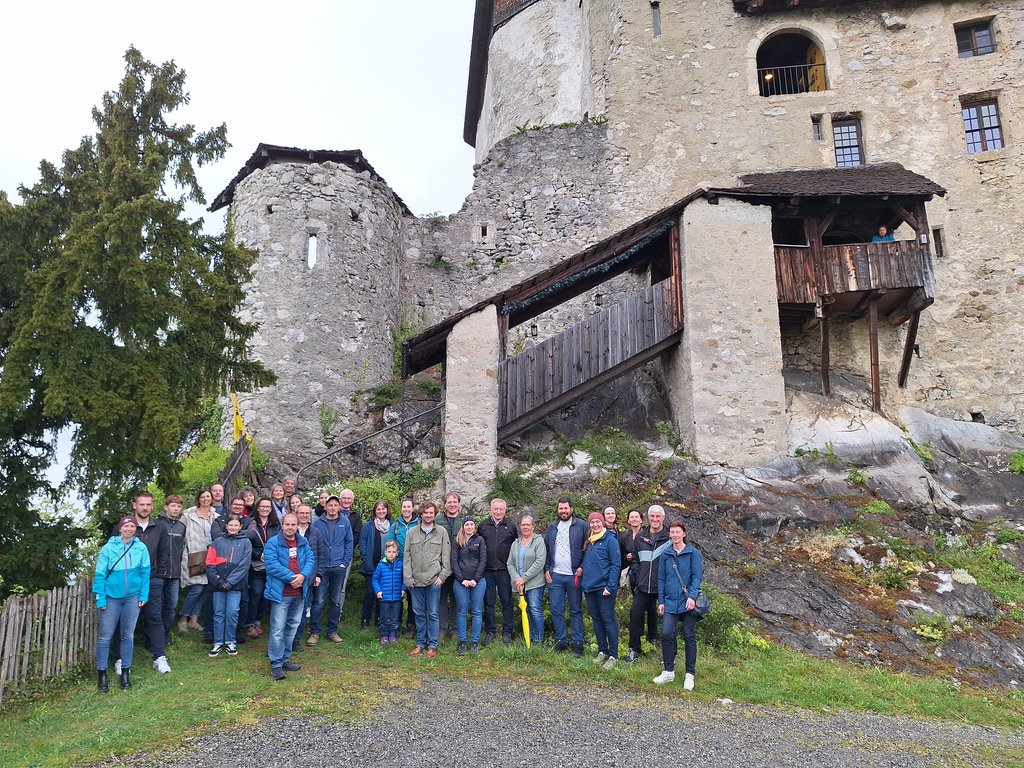 In zwei Gruppen aufgeteilt konnten 58 Erwachsene und 5 Kinder das herrlich restaurierte Schloss besichtigen. Im Anschluss wurde bei einem kleinen Umtrunk noch reichlich diskutiert.