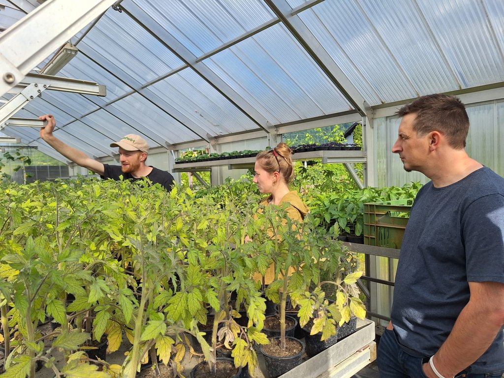 Christoph Weissenbach hat uns im Bäuerlichen Schul- und Bildungszentrum durch die betriebseigene Jungpflanzenanzucht geführt.