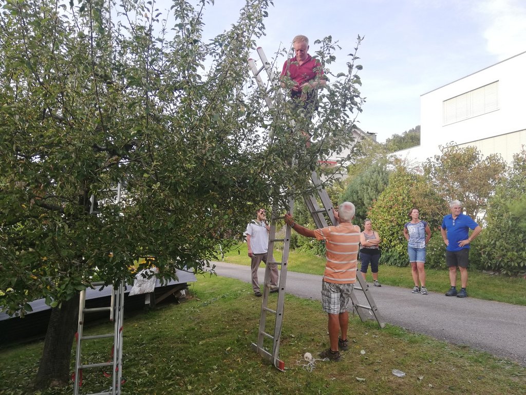 Der Baumschnittkurs wurde dieses Jahr bei Raimund Müller, Eckweg 1, durchgeführt. Unter der Leitung von Hermann Klien wurde ältere Bäume in "Form" gebracht. Landesbaumwärter Lothar Lins und Baumwärterin Christine Lohs gaben ebenso Auskunft über den fachgerechten Baumschnitt.