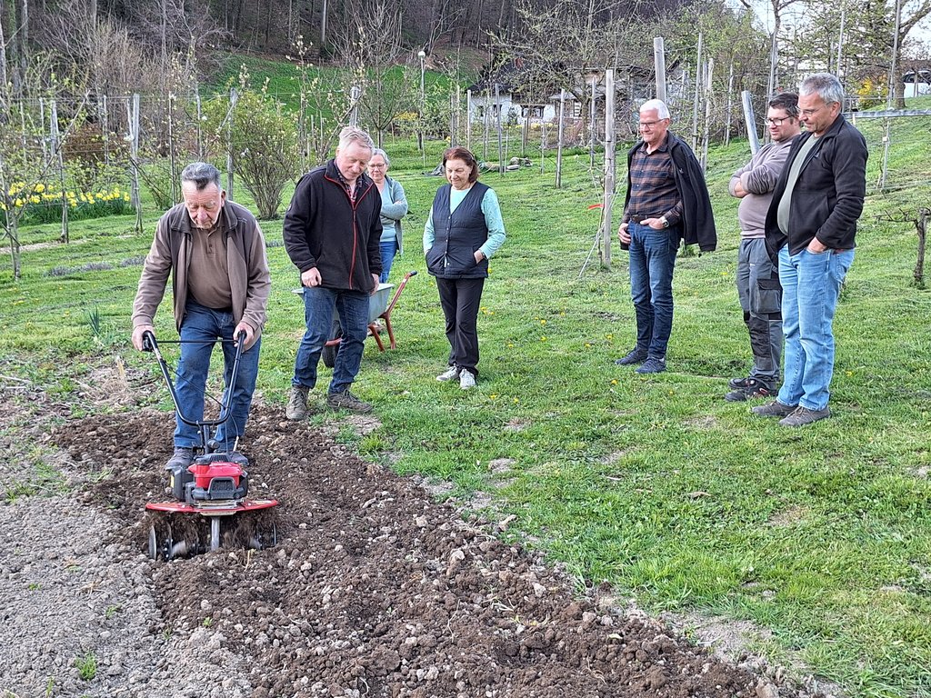 Bei gutem Wetter konnte bei Hermann Klien zu Hause die vereinseigene Gartenhacke ausprobiert werden.