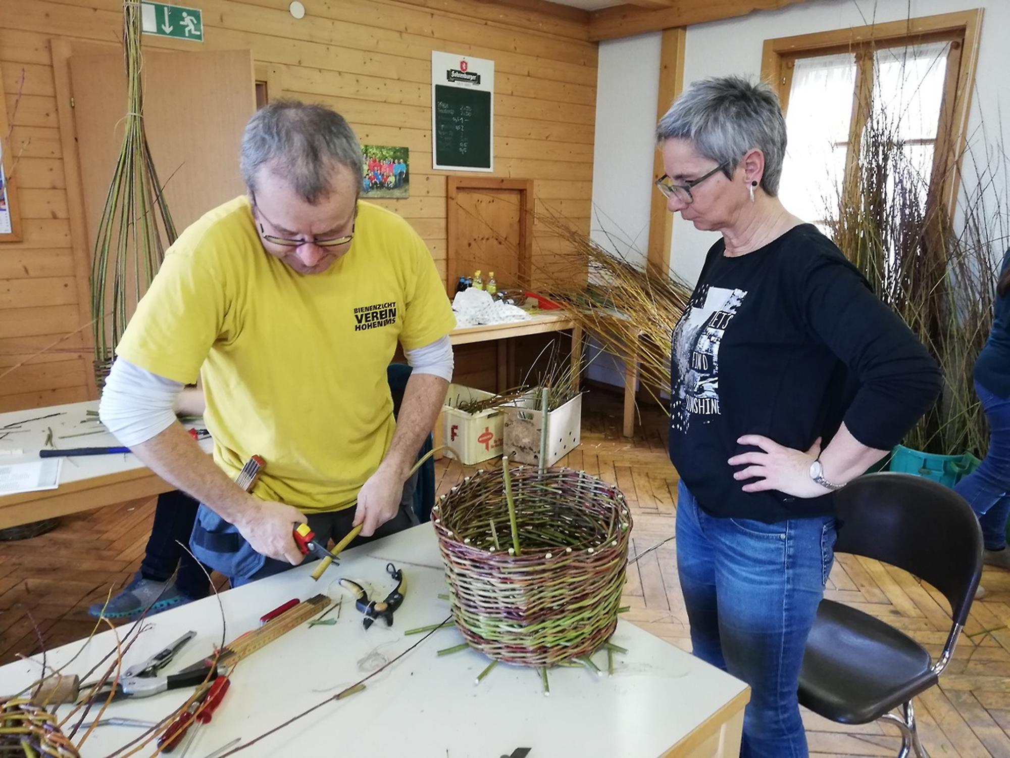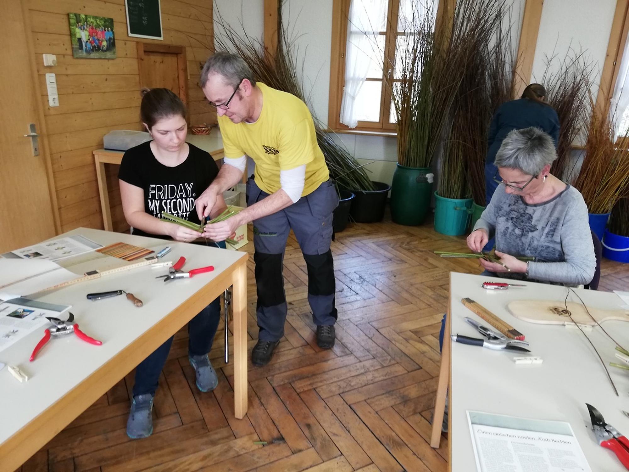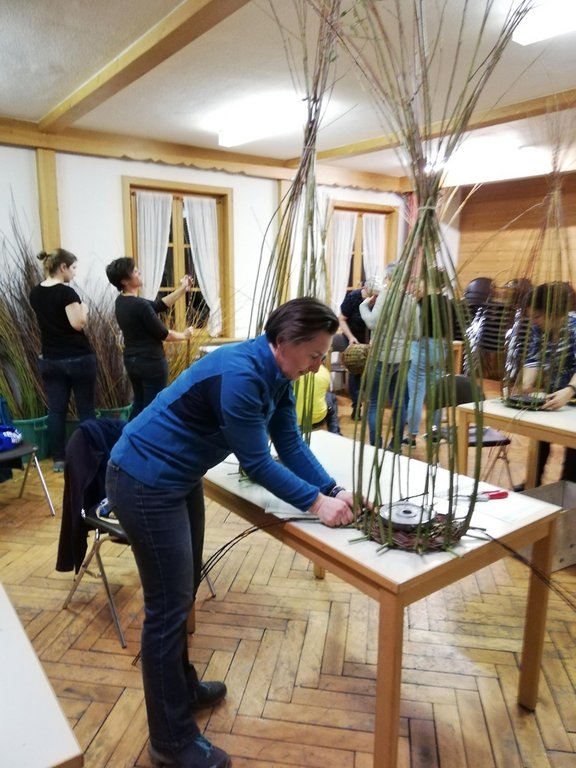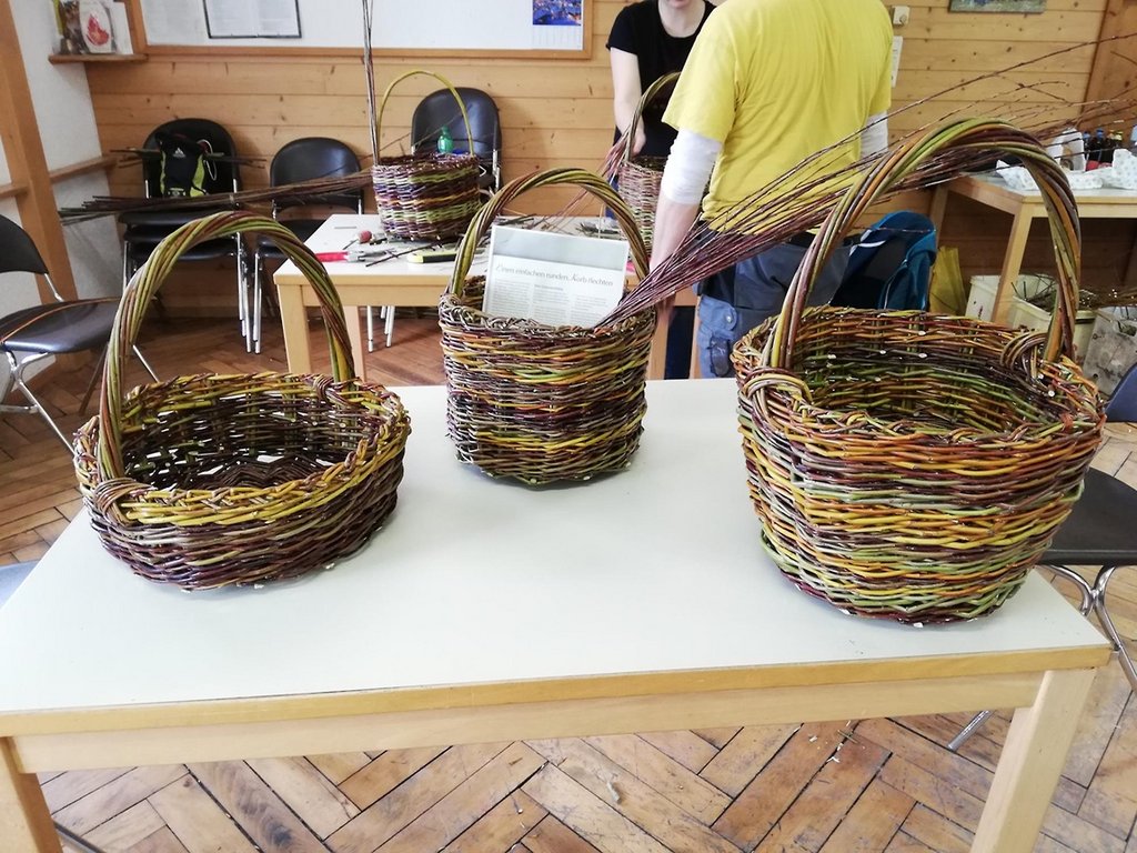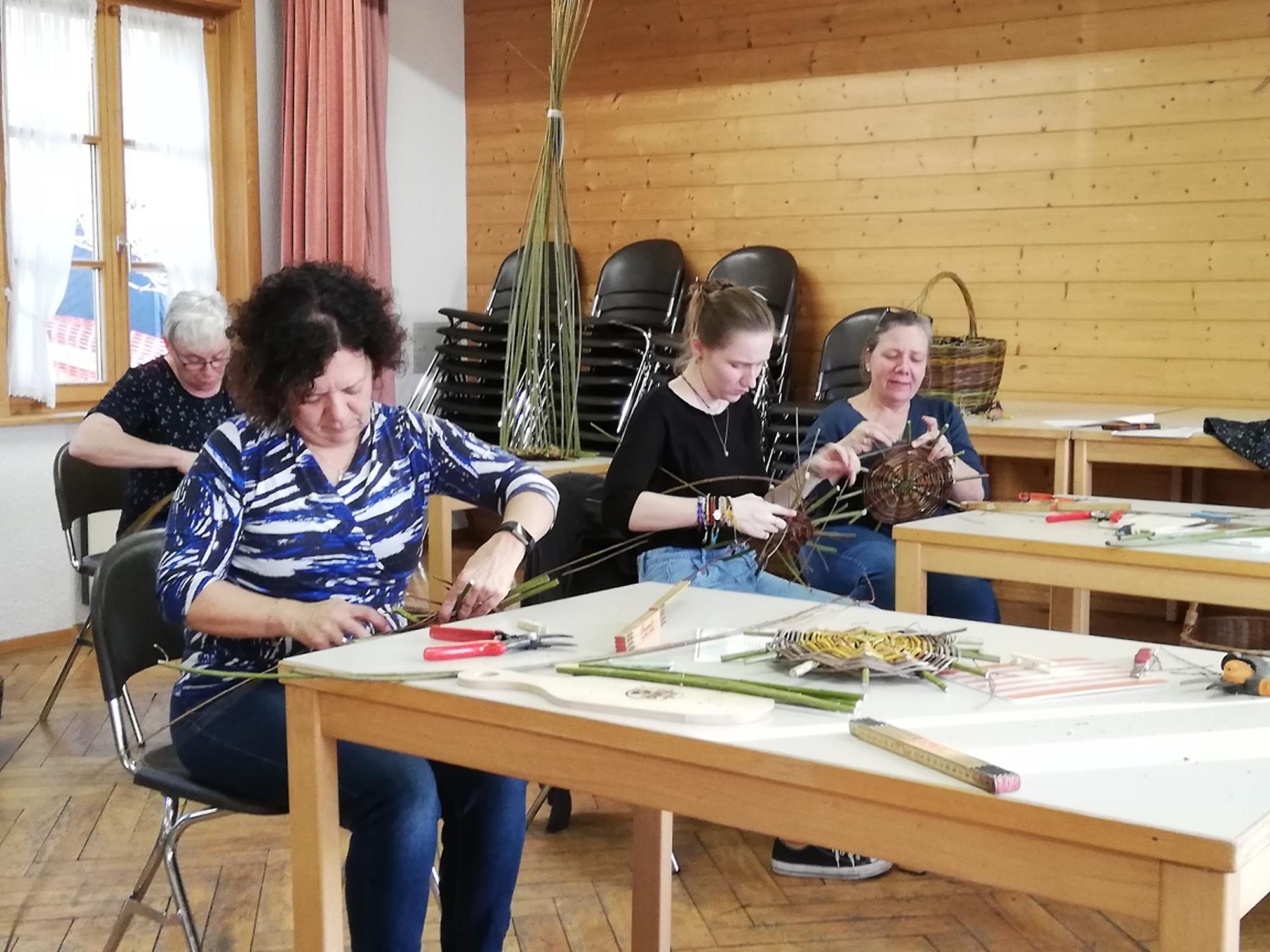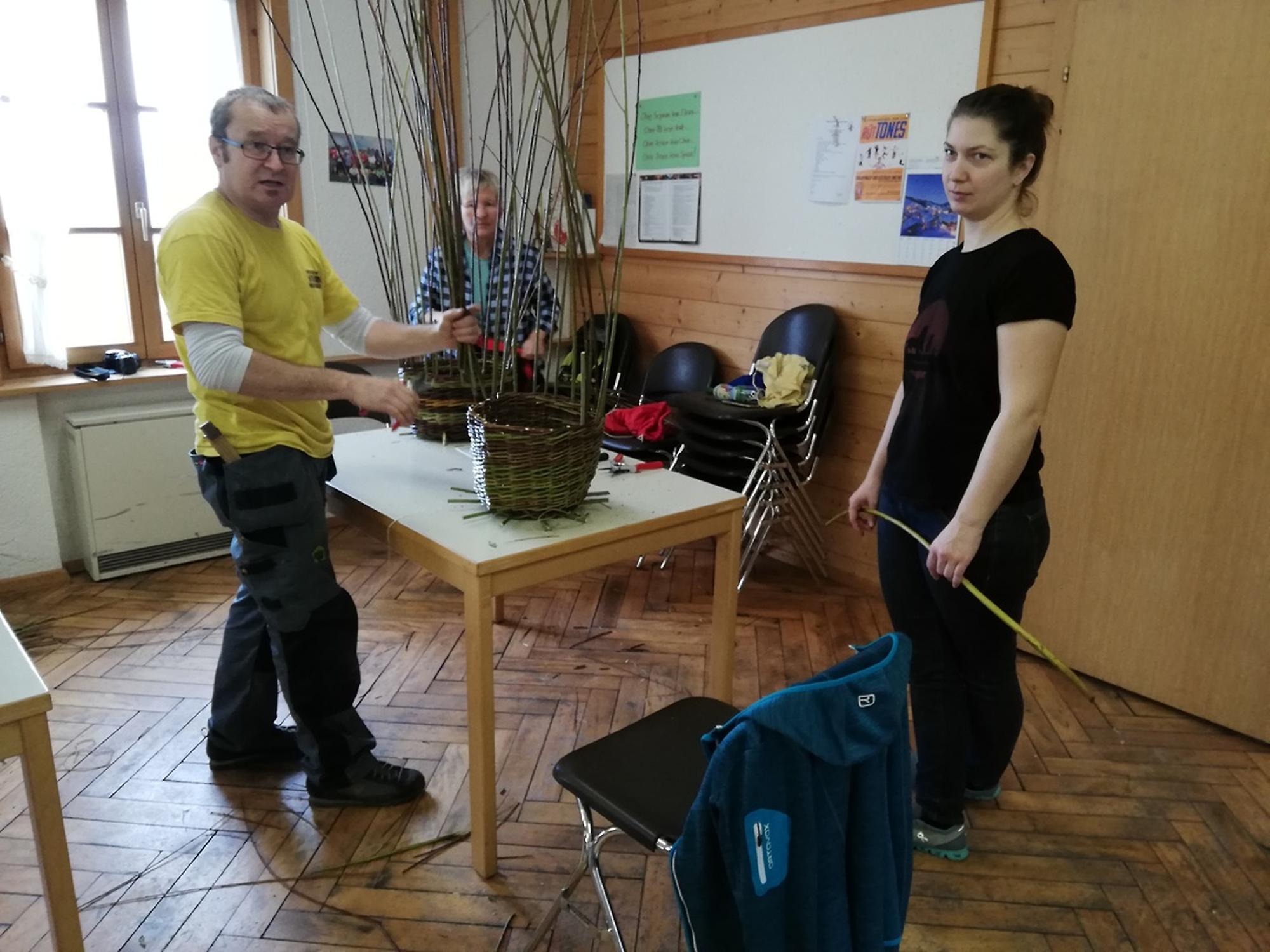Mit viel Fleiß und Elan arbeiten die TeilnehmerInnen an ihren Körben.