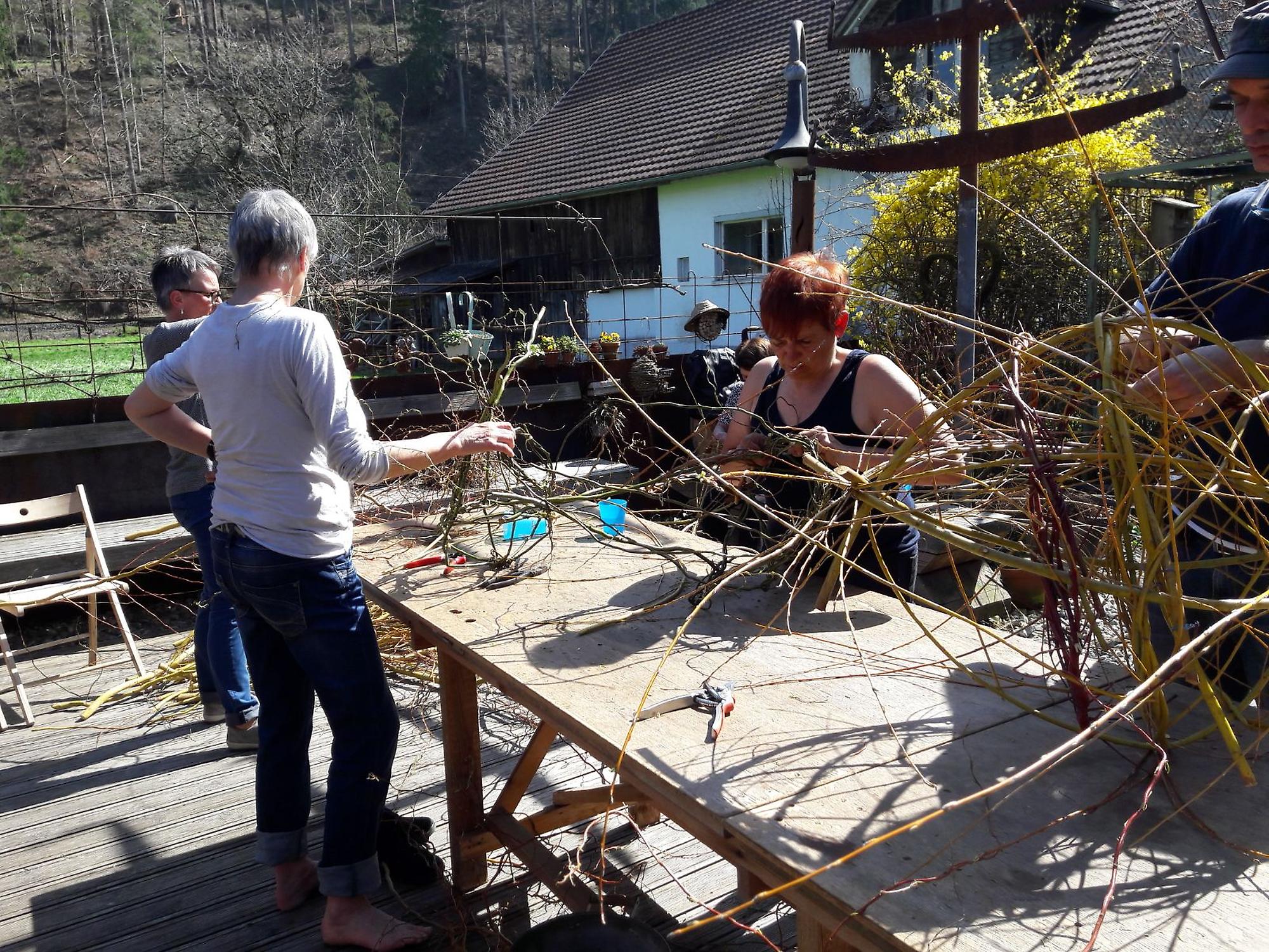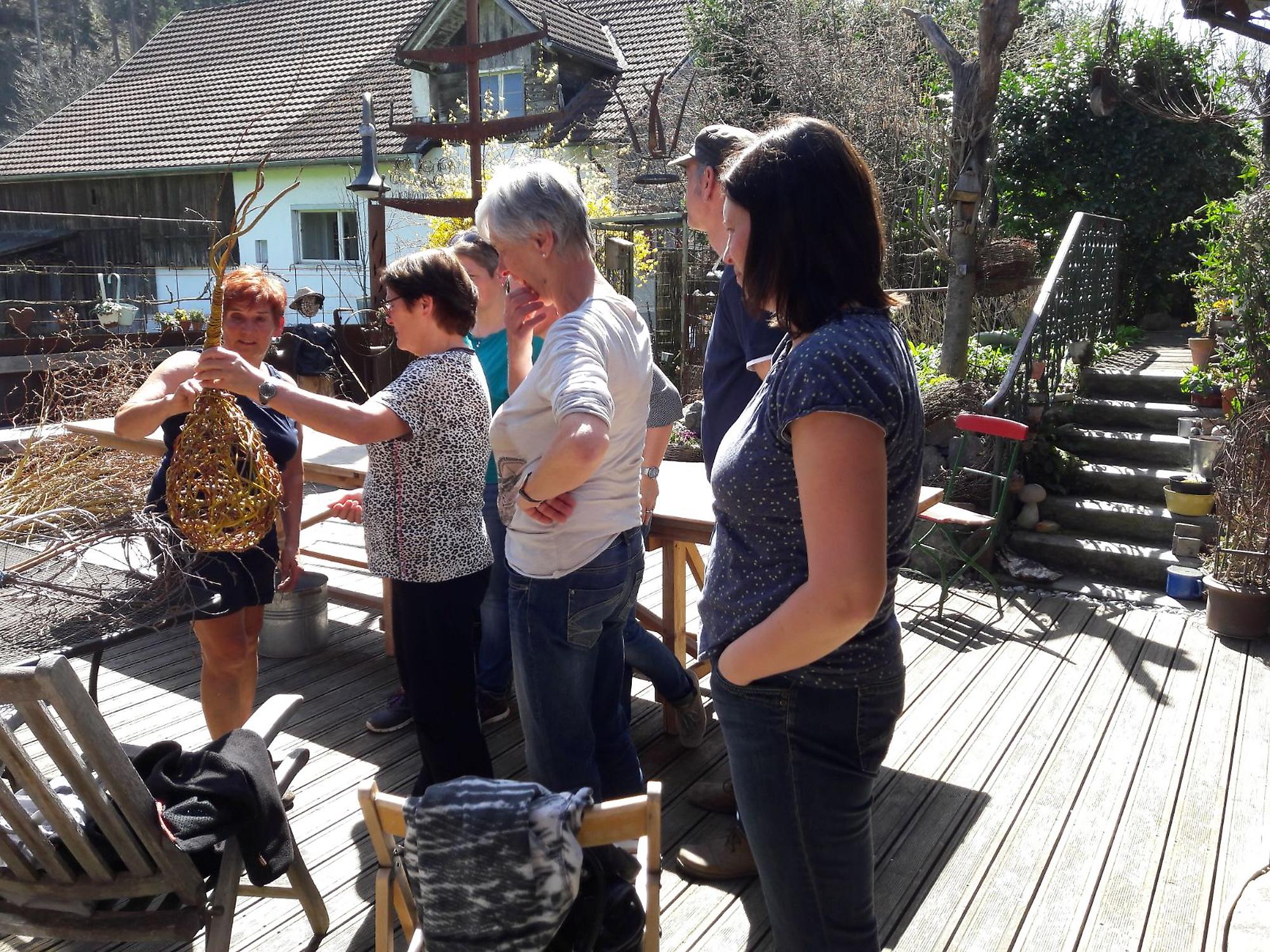 Bei traumhaftem Sonnenschein trafen sich am Samstag, den 07.04.18 interessierte Mitglieder des OGV Fellengatter um bei Doris Kuster in Gisingen erste Versuche im kreativen Flechten zu praktizieren.