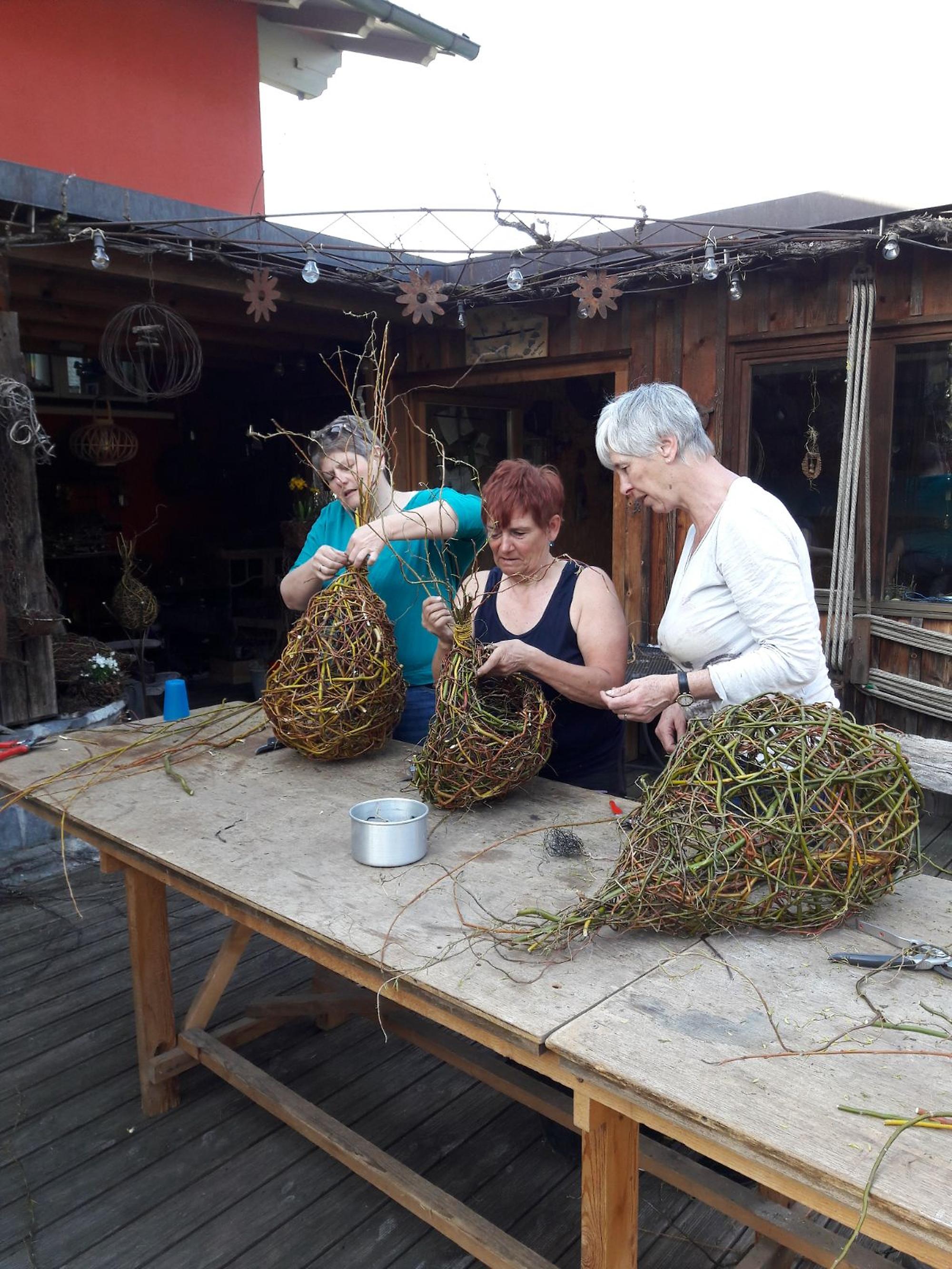 Unter der fachkundigen Anleitung von Doris sind alle mit viel Spaß und Energie an die Arbeit gegangen. Zuerst wurde das Grundgerüst erstellt und danach durften wir "wild" darauf los flechten. Wie im Flug vergingen die Nachmittagsstunden und glücklich aber auch müde konnten wir am frühen Abend unser fertiges Kunstwerk präsentieren.