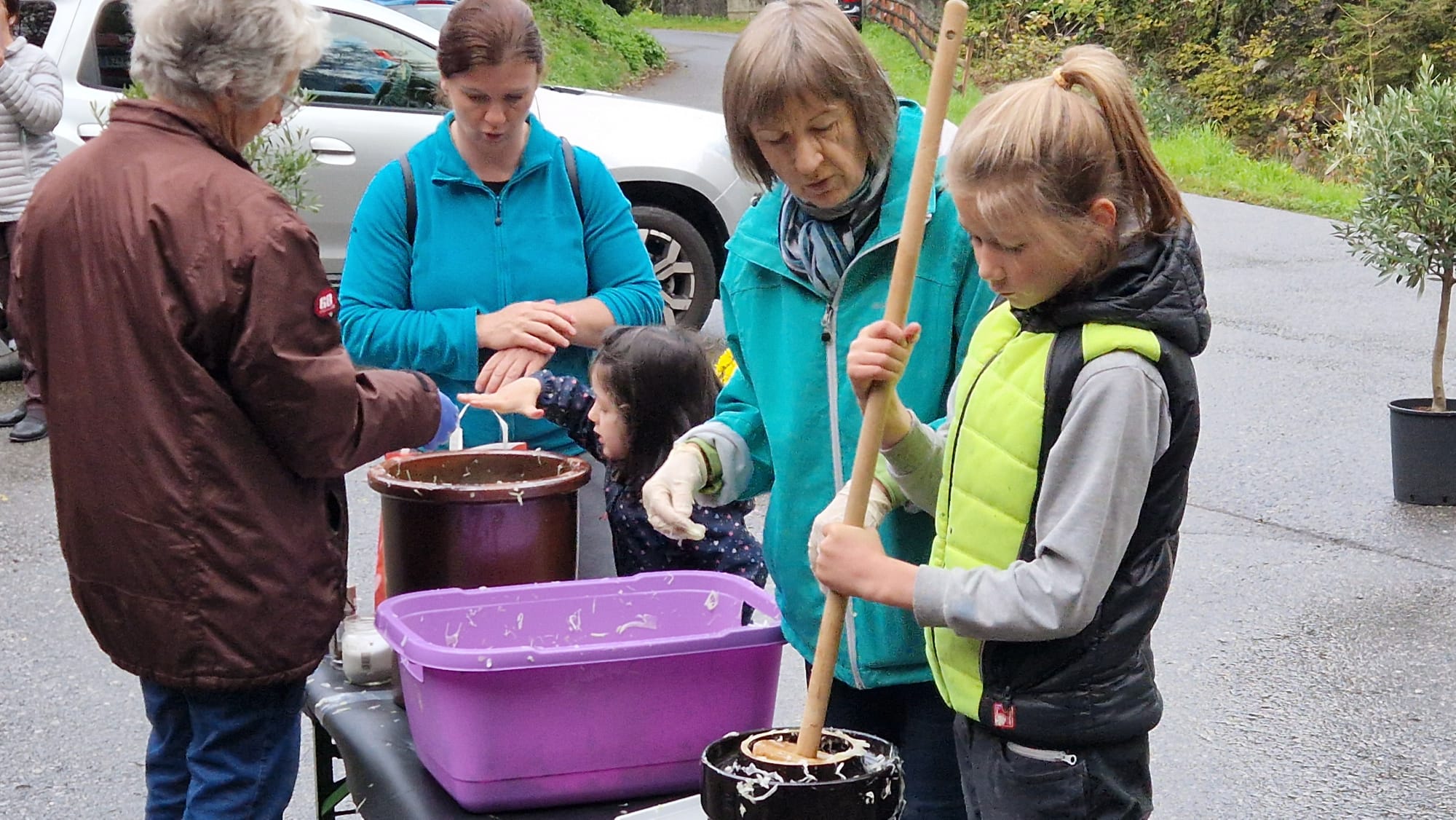 Ob in klassische Gärtöpfe oder mitgebrachte Einmachgläser gefüllt – die OGV-Experten standen den Besuchern mit Rat und Tat zur Seite. Sie hobelten, gaben Tipps zur optimalen Würzung und zeigten, wie das Kohlgemüse richtig eingestampft wird.