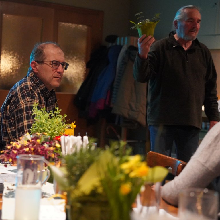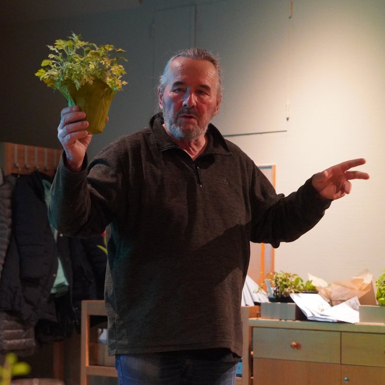 Den Höhepunkt des Abends stellte der Vortrag von Gebhard Kopf über 'Heil- und Gewürzkräuter aus dem eigenen Garten'. Der erfahrene Gärtnermeister stellte nicht nur zahlreiche spannende Gewächse vor. Er brachte von jeder Pflanze ein Muster mit, sodass wir die Gewächse mit allen Sinnen begreifen konnten.