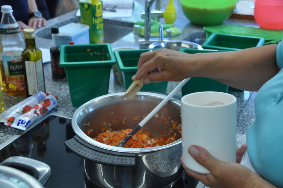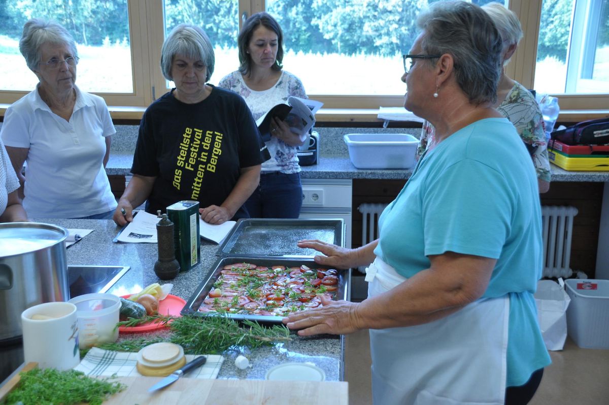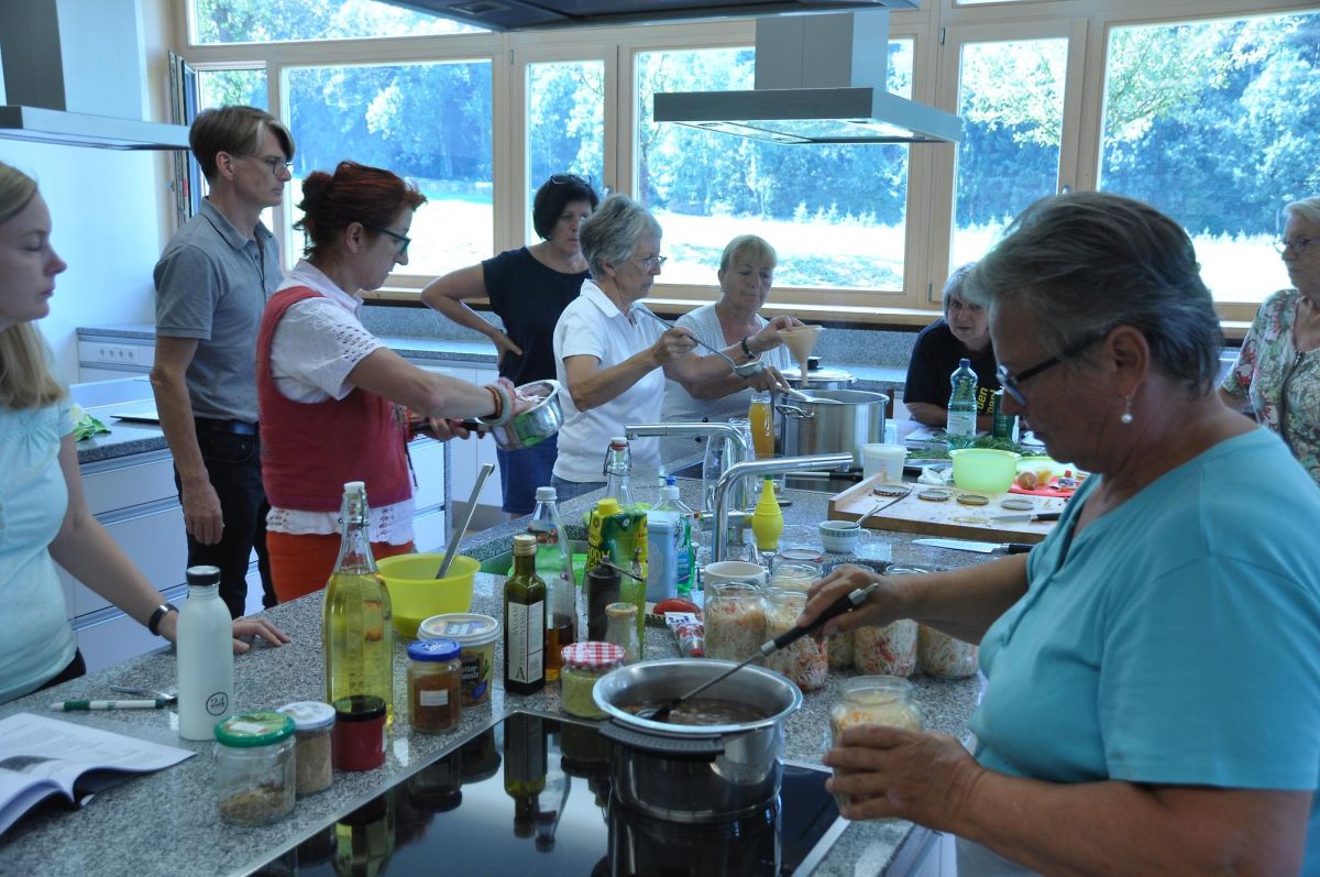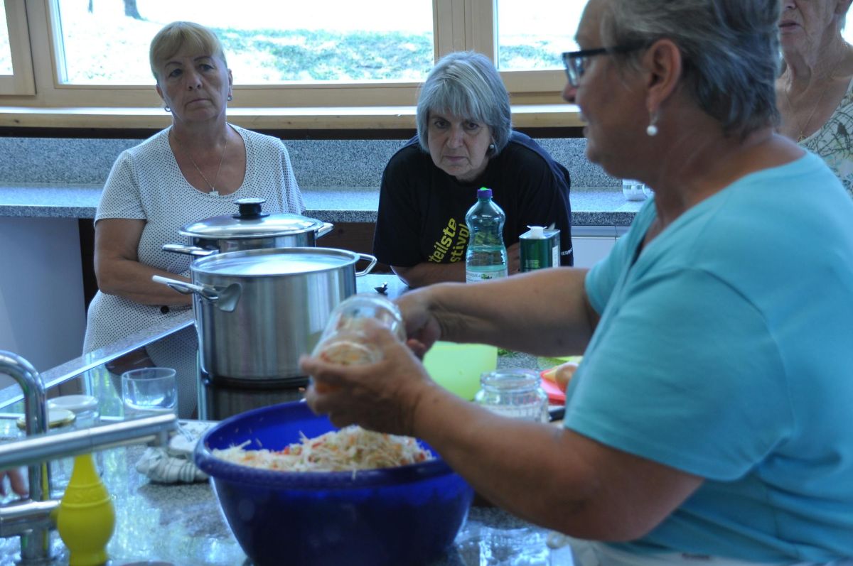 Unter Leitung von Sigrid Gasser wurde Gemüse haltbar gemacht. Salsa, Chutney, Randig-Salat uvm fanden einen geschmackvollen Weg ins Glas.