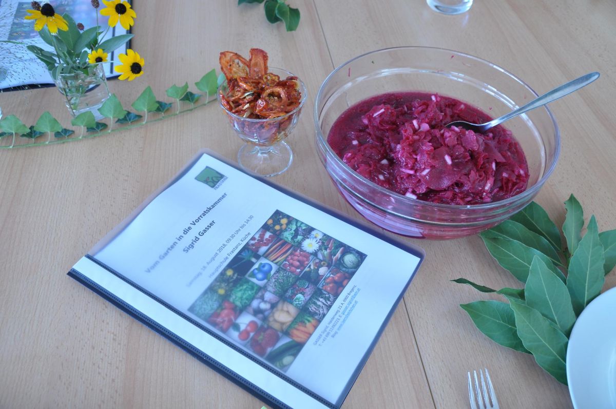 Wir bedanken uns bei Sigrid Gasser für den kurzweiligen, sehr geschmackvollen Streifzug durch die Welt der Haltbarmachung. Ihre Rezeptmappe bietet uns nun die Grundlage für heroische Selbstversuche.