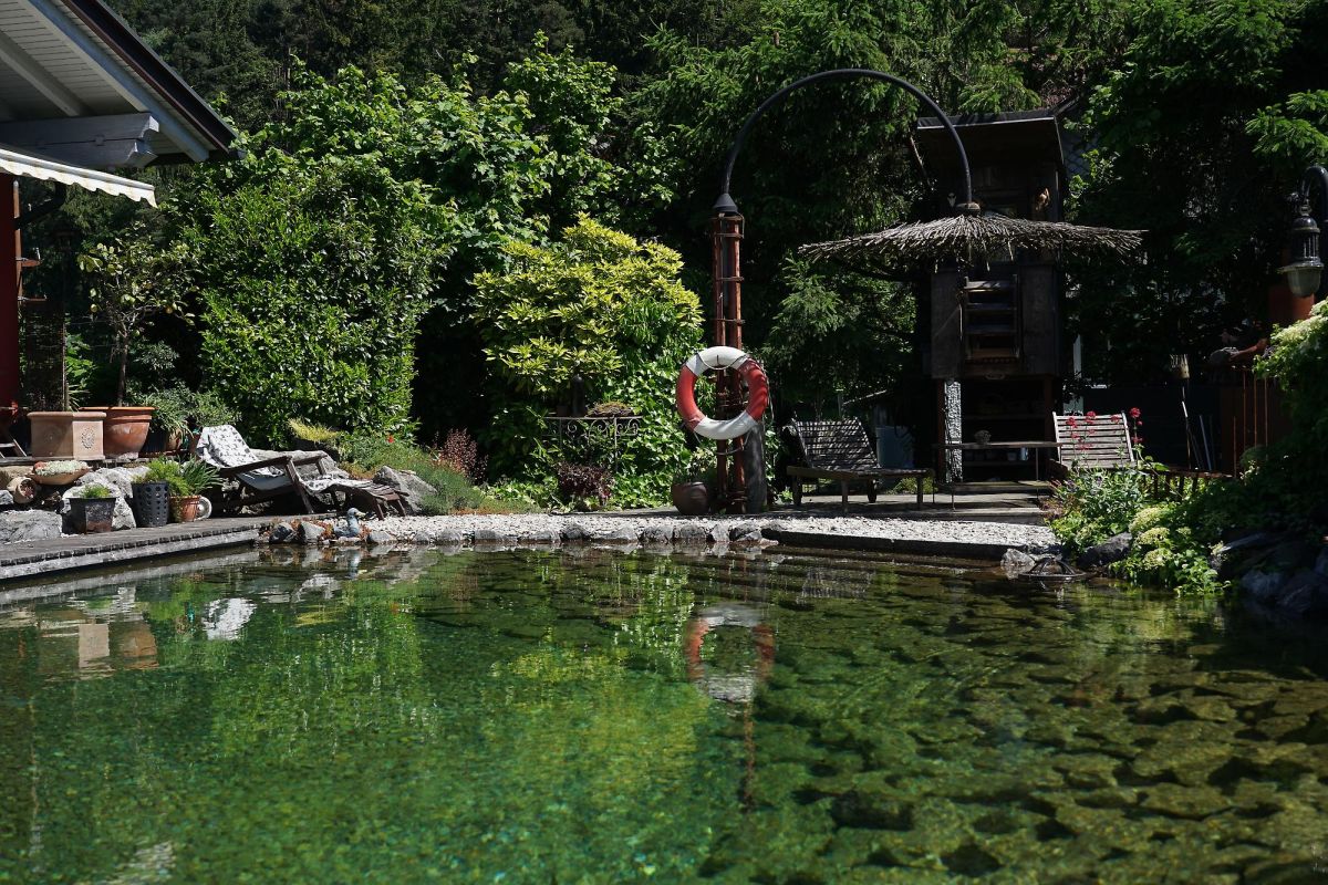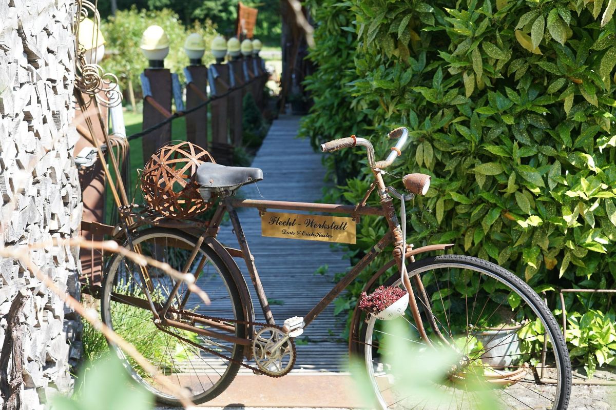 Kontrastreich präsentierte sich der Garten von Doris und Erich Kuster. Jede Idee wird umgesetzt, egal ob in Weide, Holz oder Metall gearbeitet. Skurrile Gartenskulpturen reihen sich beim Rundgang aneinander, daneben stimmungsvolle Ruhezonen. Die Gartensauna im Hochsitz oder der Sitzplatz am großen Schwimmteich laden zum Ruhen und Verweilen ein. Gesammelt wird alles, denn irgendwann lässt sich jedes Material verwenden. So staunten wir nicht schlecht, über die vielen Kreationen und Kuriositäten. Einfach toll!