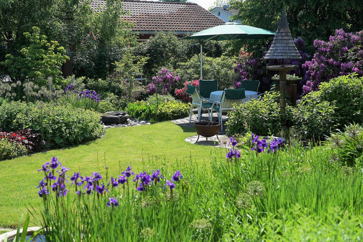 Der stimmungsvolle Ziergarten von Irene und Günter Fraisl bot uns schließlich wieder ein gänzlich anderes Gartenbild. Der perfekt gepflegte Ziergarten mit wunderschönen Staudenarrangements, gewaltigen Rhododendren, blühenden Rosenbögen, mehreren Sitzbereichen aber auch Obst und Gemüse ist mit gepflegten Gartenanlangen in England vergleichbar. Blühende Pflanzen wechseln sich darin ganzjährig ab, so dass der Garten stehts eine Augenweide ist. Irene und Günter gestalteten das Anwesen mit viel Gefühl für Formen und Farben und dürfen so in einem Paradies leben.