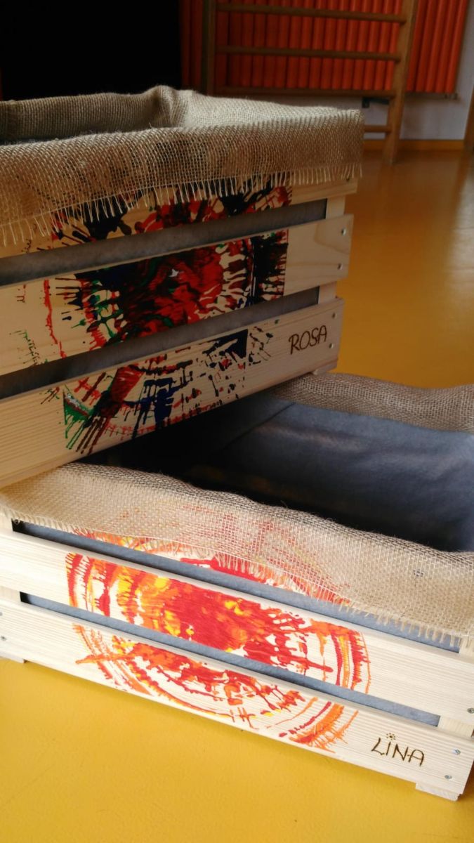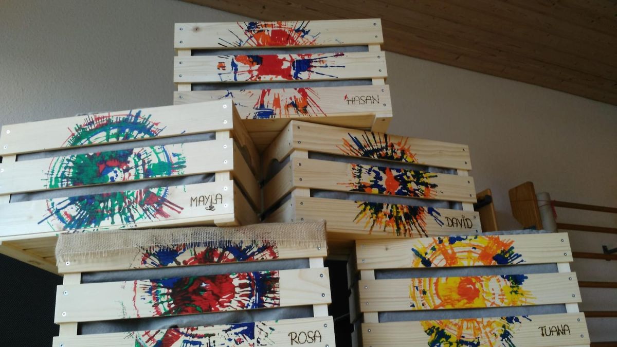 In mehreren Schritten wurden zuerst die Kisten zusammenmontiert und vorbereitet. Nachdem dieser Schritt bereits erledigt war, erhielt jede Kiste eine indiviuelle Kennzeichnung. Anbei ein kleiner Ausschnitt der gelungenen Motive.