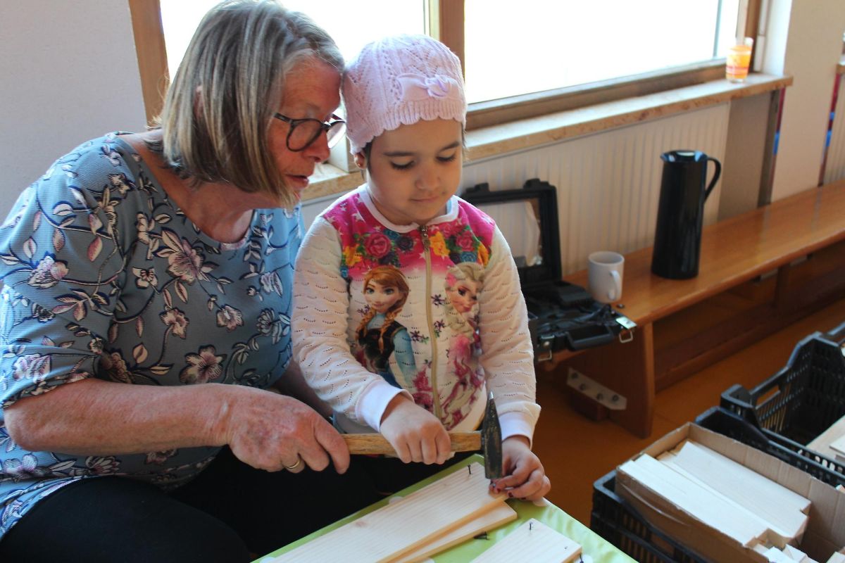 Zum Abschluss bauten die Väter mit den Kindern noch ein kleines Hotel für die Insekten, das in den "Kischta Gärtle" platziert wurde.