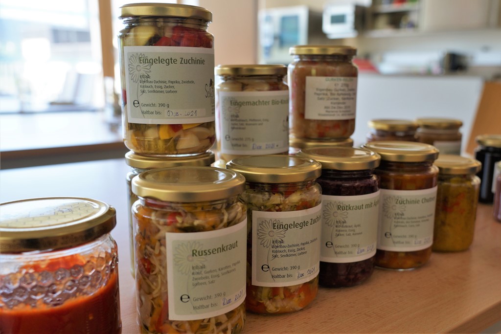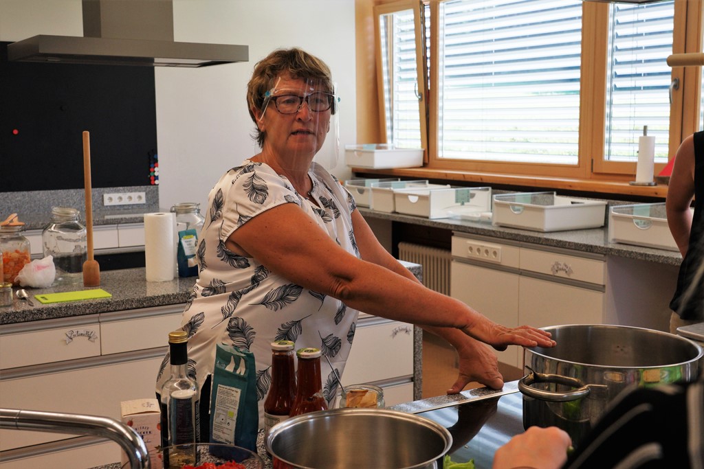 Die Temperaturen am 7. August waren hochsommerlich, doch der Gedanke der Teilnehmerinnen lag bereits in der kühlen Jahreszeit. Dann gibt es kaum Fruchtgemüse aus dem Garten. Um dieses jedoch auch für den Winter parat zu haben, wurde einkocht, eingeweckt, marmeladisiert und haltbar gemacht. Marianne Scheidbach ist fix in diesen Arbeiten, denn so konserviert sie ihre hochwertigen Bio-Lebensmittel aus ihrem eigenen Garten regelmäßig.