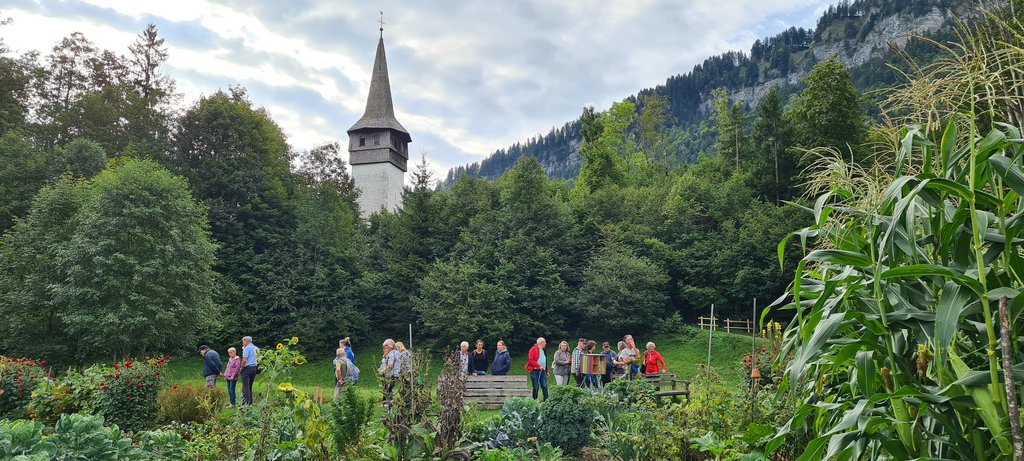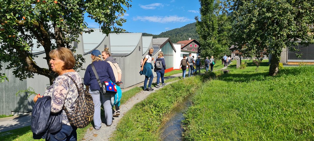 Erstes Ziel war der Gemeinschaftsgarten Reuthe/Bezau der von Isabella Moosbrugger mit viel Eifer und Fachwissen betreut und verwaltet wird. Hier bekamen wir einen Einblick, wie der Gemeinschaftsgarten entstanden ist und wie er von der quirligen Isabella organisiert wird. Nach einer Erfrischung, mit von Isabella selbst hergestellten Kräuter- und Obstlimonaden, spazierten wir ins Ortszentrum von Bezau zum Schulgarten und Erdkeller. Hier erfuhren wir alles über die Gemüse-Lagerung im Erdkeller und wie der Schulgarten bewirtschaftet wird. Im Traditionell sanierten und wunderbar dekorierten Gasthof Löwen in Au-Rehmen wurden wir mittags bestens verpflegt. Im Anschluss ans Mittagessen erfuhren wir bei einer Brennereiführung alles über den Unterschied zwischen „Geist“ und „Brand“ und über die Herstellung von diversen Spirituosen. Sehr interessant waren auch die Lagerkeller mit den verschiedenen, großen Behältnissen. Am Nachmittag fuhren wir mit dem Wälderbähnle mit viel Dampf von Bezau nach Schwarzenberg. Beim Möcklebur in Dornbirn ließen wir unsere interessante und schöne Ausflugsfahrt bei einer Jause gemütlich ausklingen.