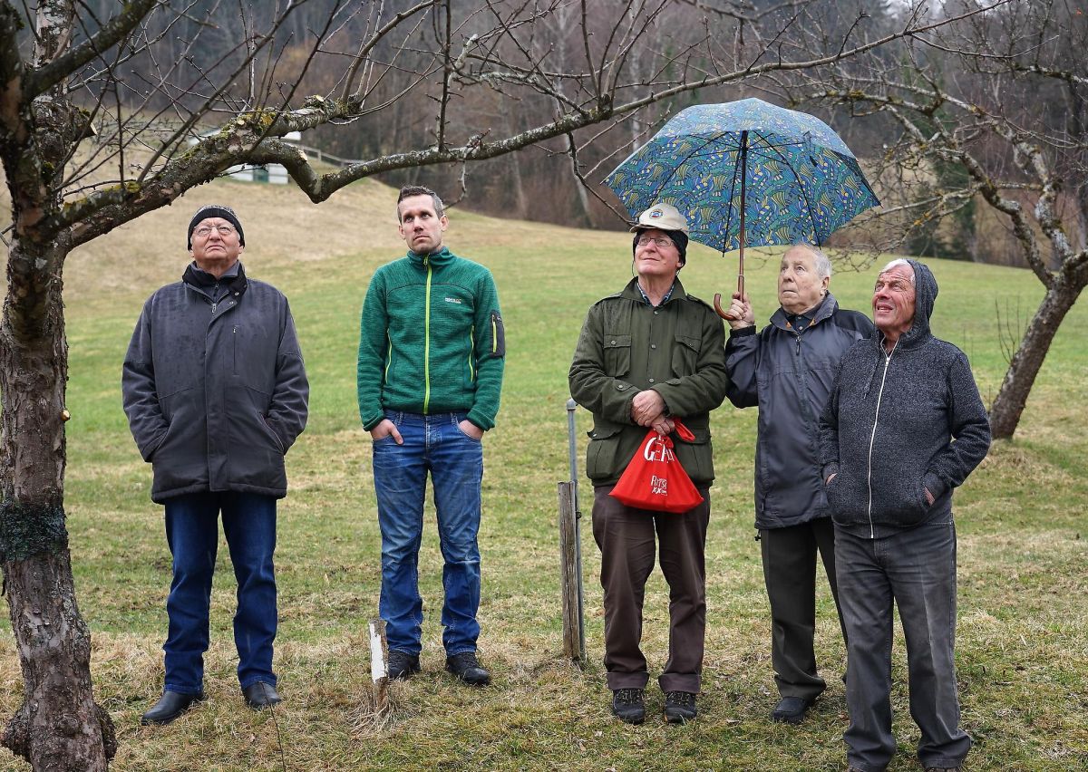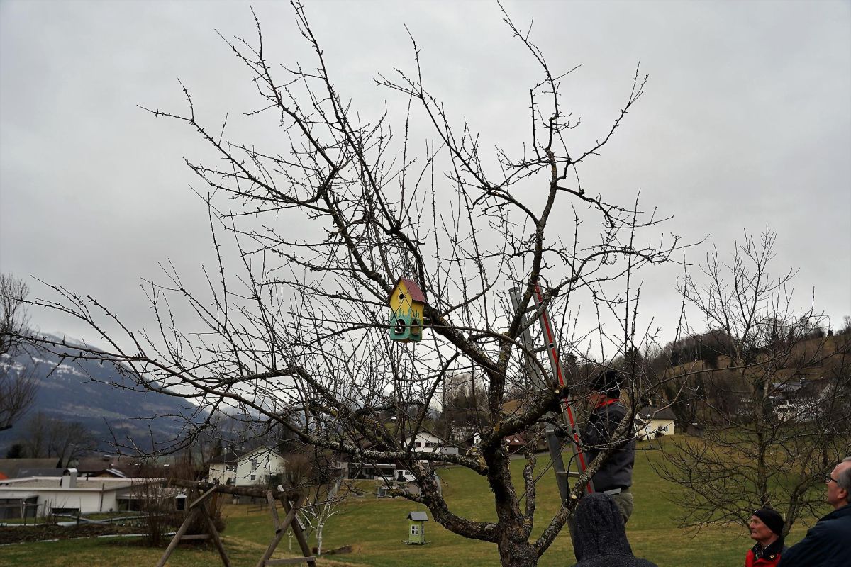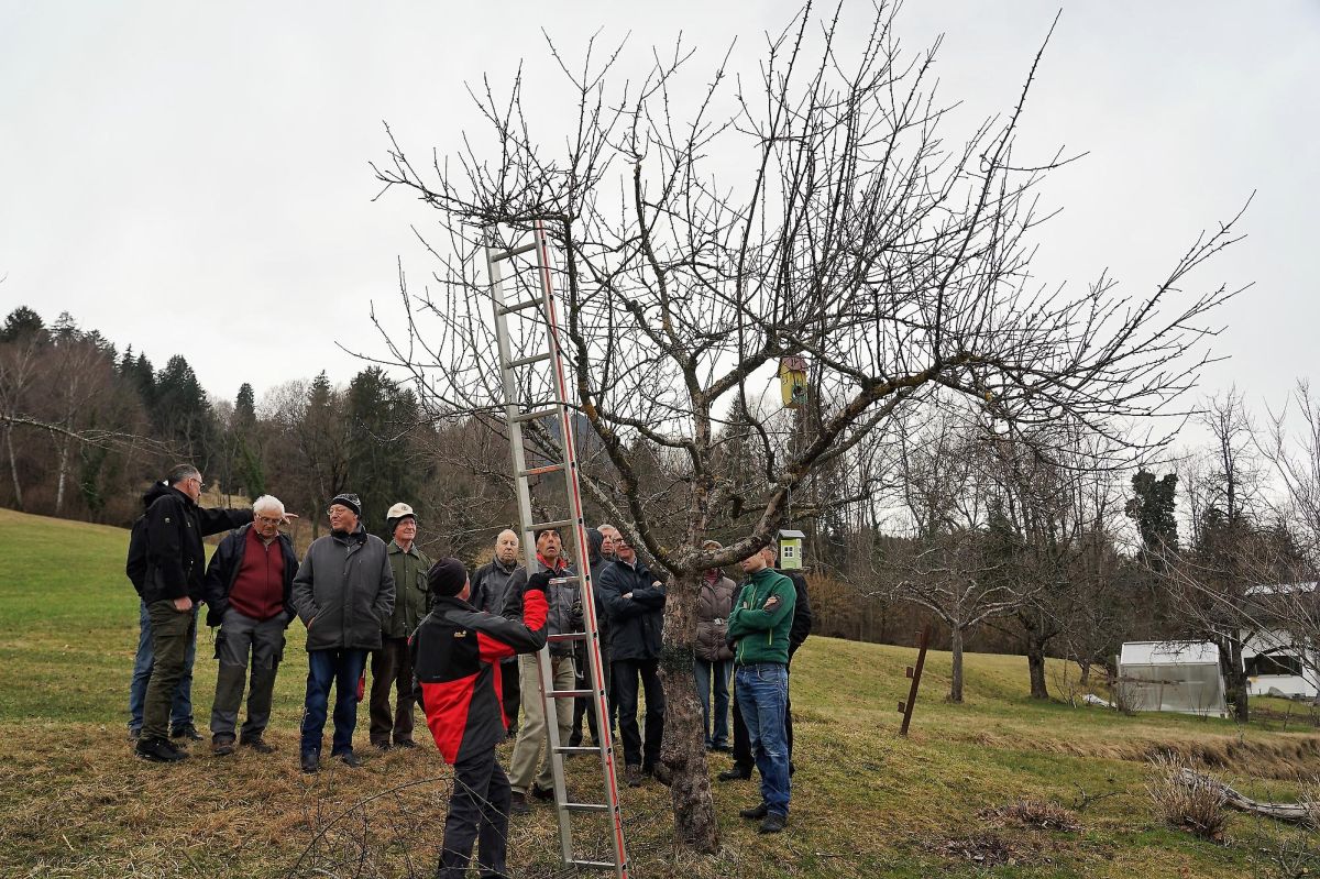 Jürgen Hoellger und Helmut Hosp wiesen uns in den Winterschnitt von Kernobstbäumen ein.
