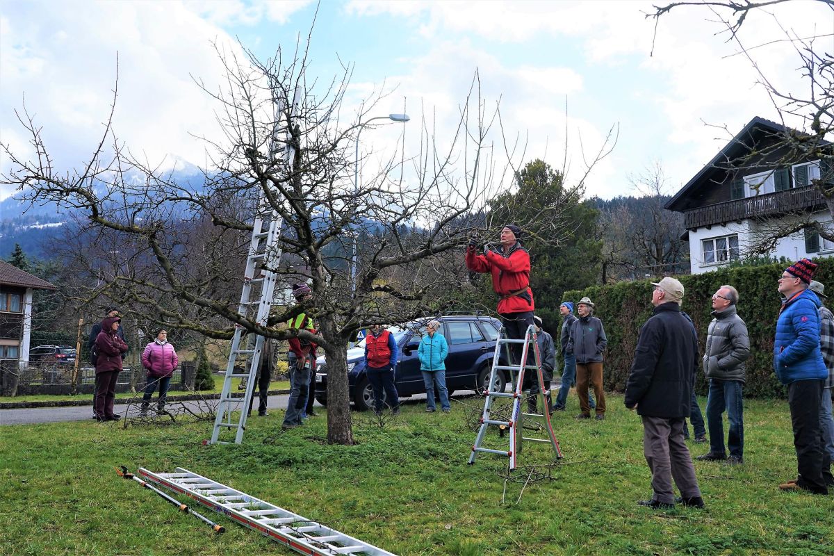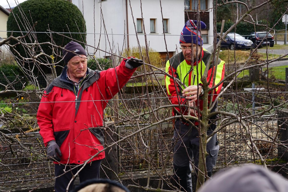 Schon am Tag nach der Jahreshauptversammlung ging es an die Bäume von Bertl Gragl. Jürgen und Peter leiteten den Winterschnittkurs an Obstgehölzen.