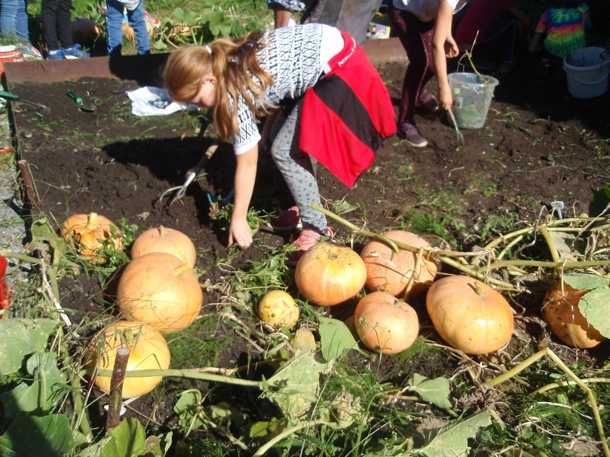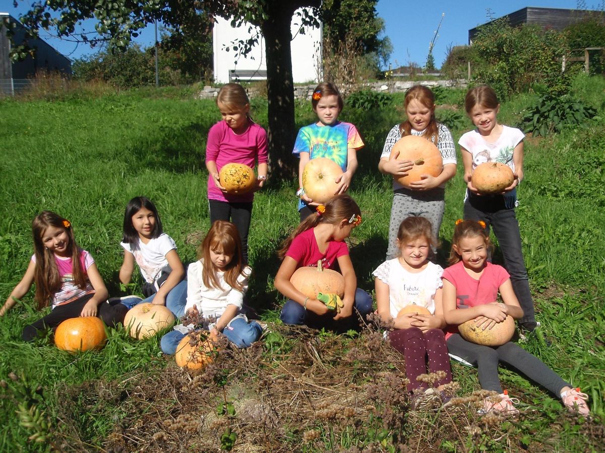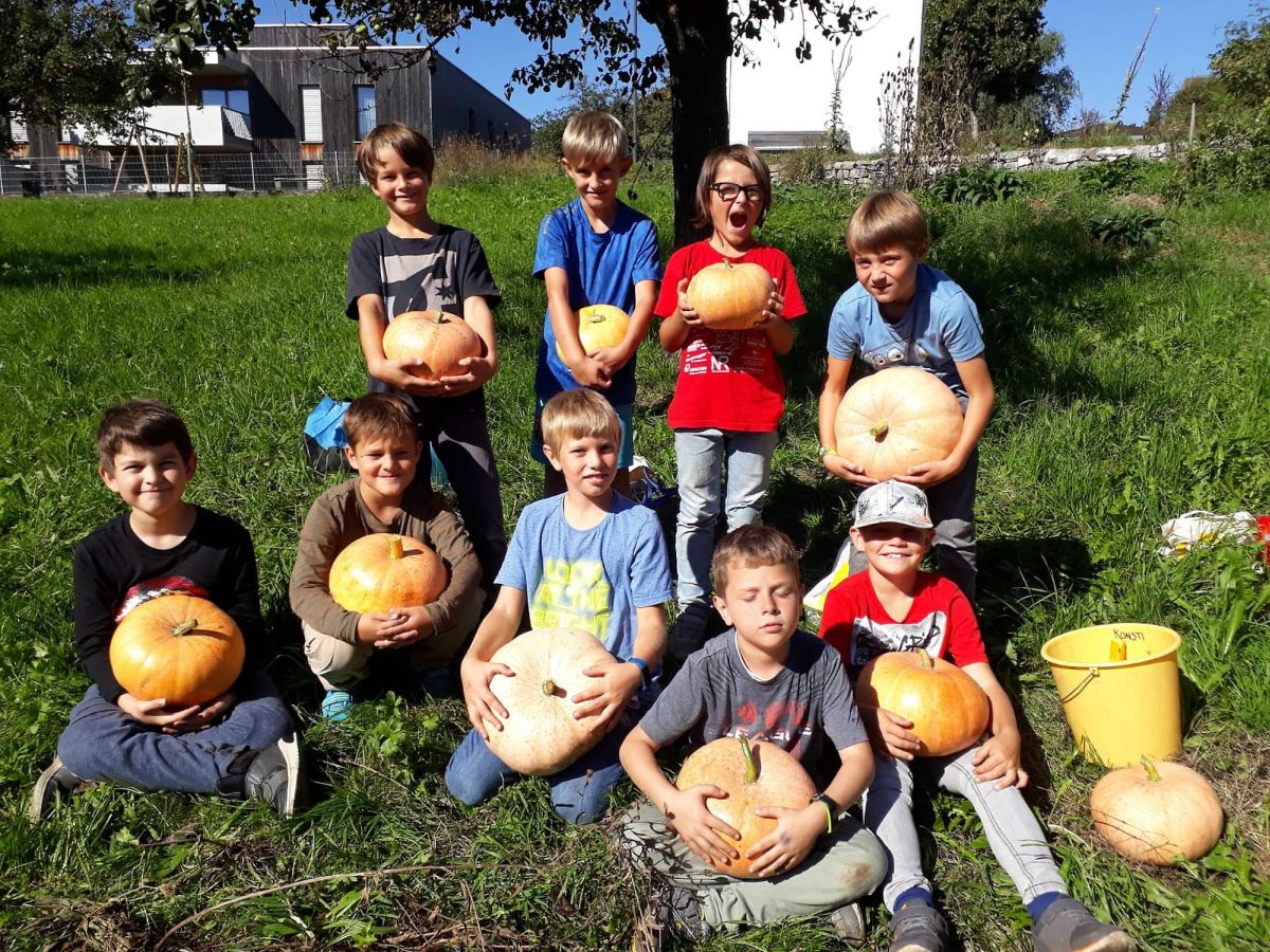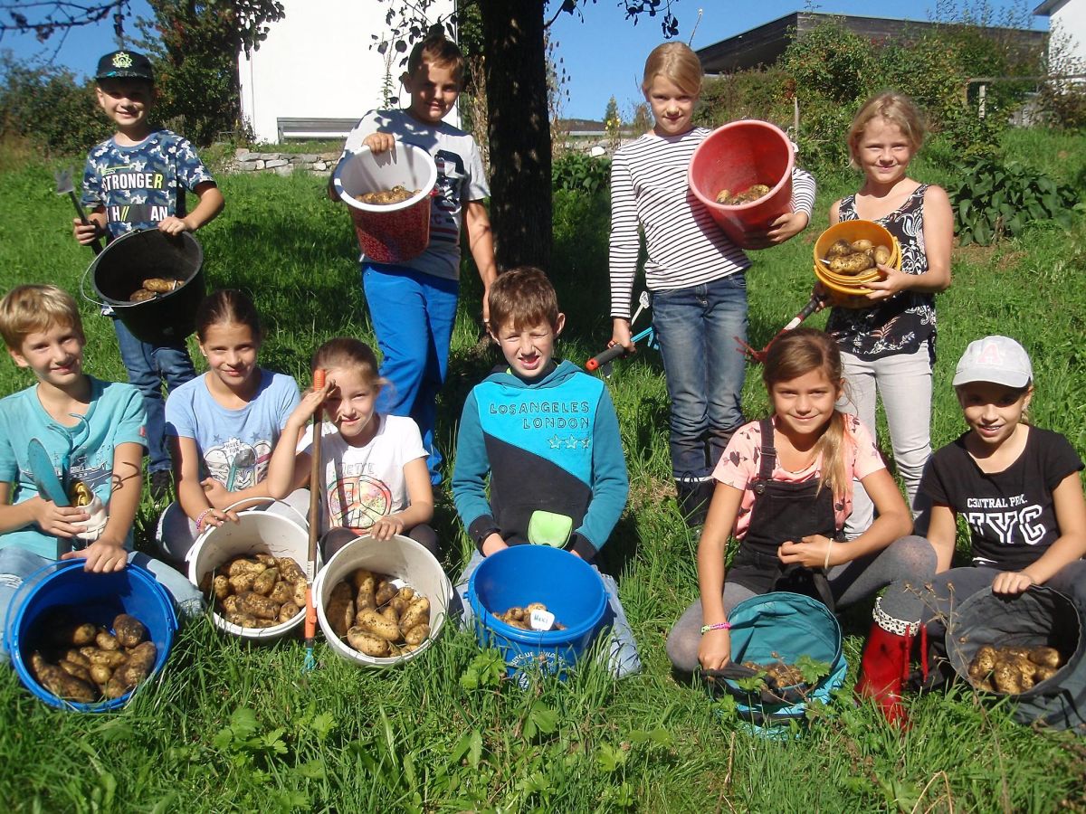 An einem strahlenden Herbsttag konnten wir mit der 3. und 4. Klasse der Volksschule Göfis Kirchdorf die Kürbisse bzw. die Kartoffeln ernten. Die Klassen wurden jeweils in zwei Gruppen aufgeteilt.