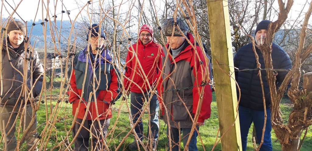 5 Teilnehmer besuchten diesen Kurs über großfruchtige- und mini Kiwi. In der Anlage von Willi Huber erfuhren die Teilnehmer wie man eine ältere Kiwipflanzen neu formiert. Kurseiter waren Willi Huber und Armin Treichl.