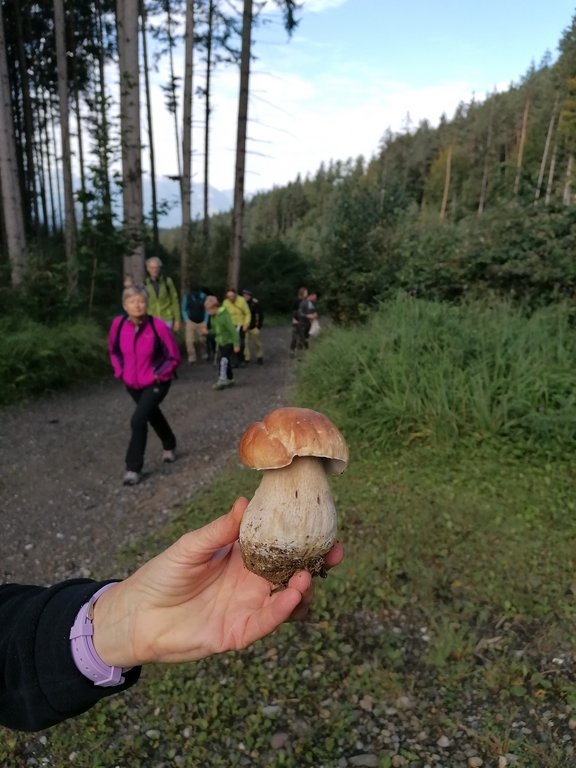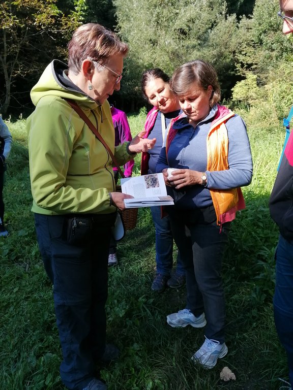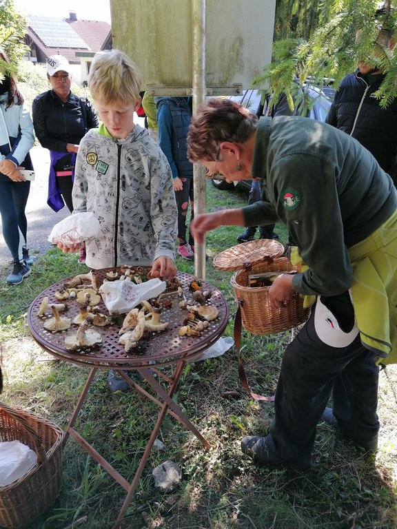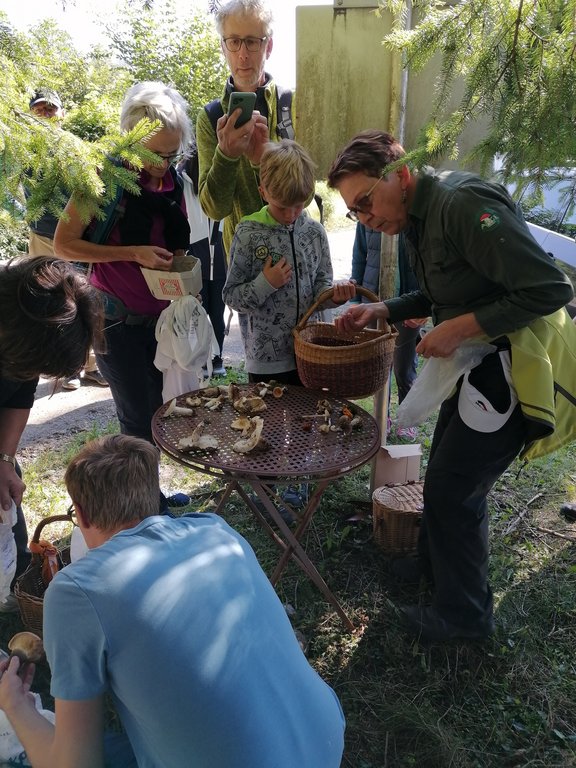Nach einer kurzen Einführung in die Welt der Pilze, schwärmten wir los um die ersten Exemplare zu suchen. In kurzen Etappen versammelten wir uns immer wieder und begutachteten unsere gesammelten Werke. Zwischendurch erfuhren wir, wie Pilze richtig geerntet werden, welche Behältnisse sich für den Transport eignen und dass fragwürdige Exemplare, für die mögliche Bestimmung zu Hause, extra verpackt werden müssen. Wichtig zu erfahren war, dass fast alle Speisepilze roh giftig sind und beim Kochen wirklich gut erhitzt werden müssen. Auch die Pilzvergiftung und die unechte Pilzvergiftung war ein interessantes Thema. Über Aufbewahrung, Zubereitung und Konservierung gab es interessantes zu erfahren. Bei der Schlussbesprechung konnten doch einige unterschiedliche Exemplare auf den Tisch gelegt werden.Pilze haben im Kreislauf der Natur eine sehr wichtige Funktion und deshalb zerstören wir giftige und unbrauchbare Pilze nicht!